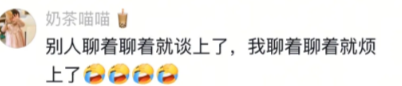 别人聊着聊着就谈上了,我聊着聊着就烦上了