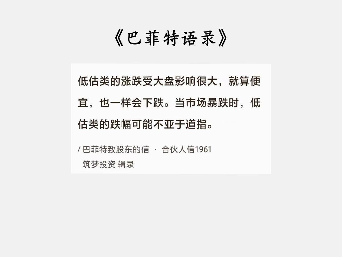 No.040巴菲特聊“市场先生” 巴菲特曰:“低估类的涨跌受大盘影响很大,就