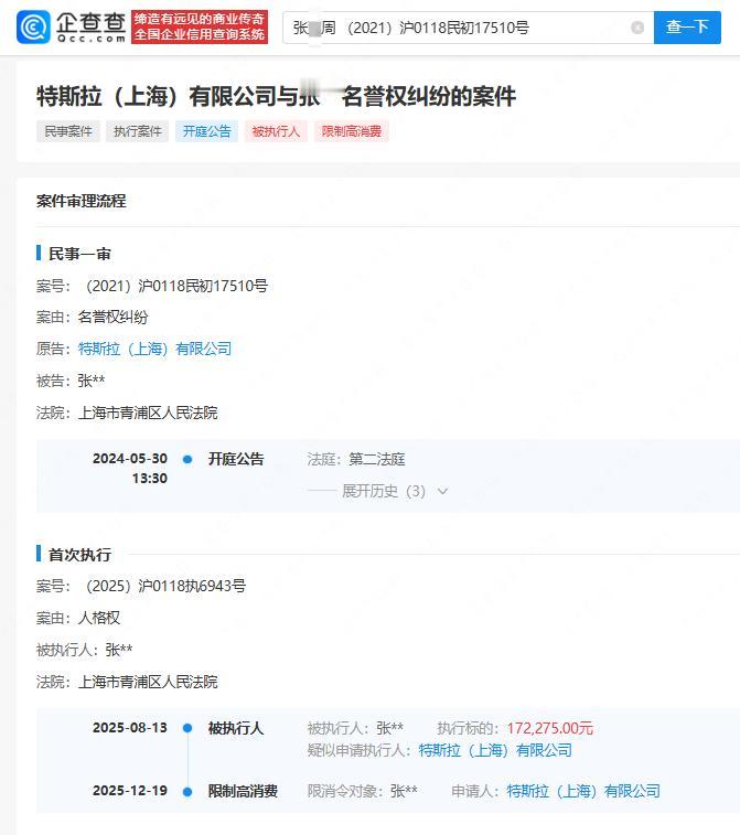 【特斯拉申请限消车顶维权女车主】