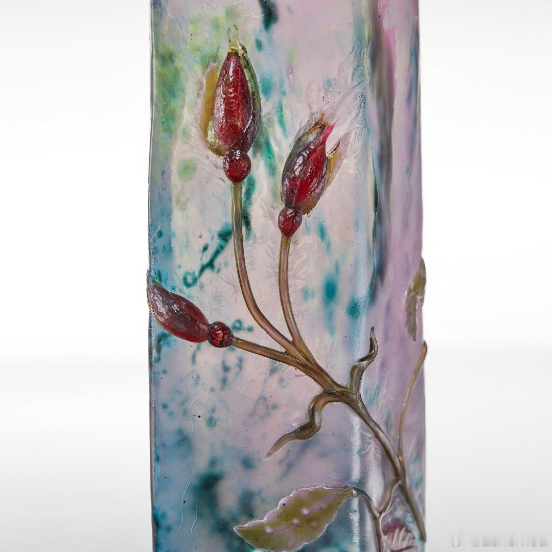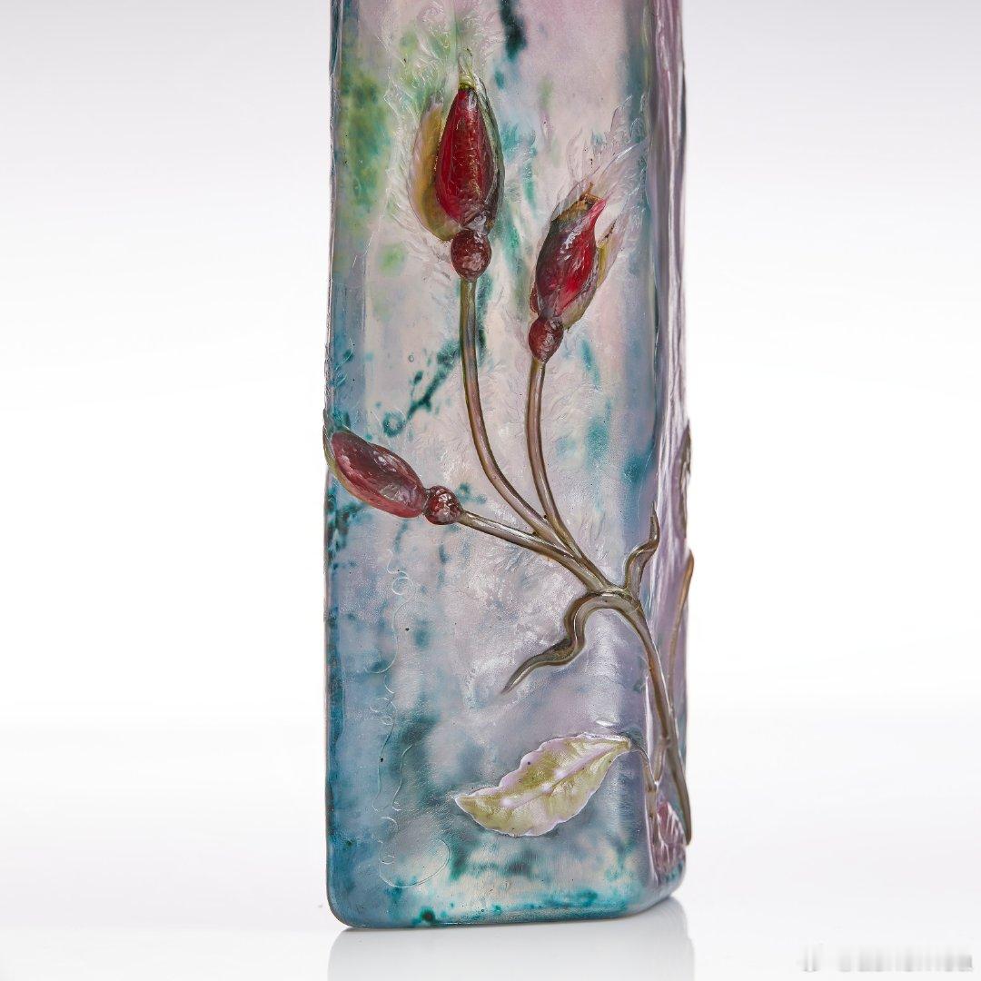 西洋历史文化鱼缸 历史知识 法国新艺术运动工艺美术大师艾米里·加莱(Émile Gallé,1846年5月8日-1904年9月23日)1900年制作的法国玫瑰玻璃瓶,尺寸为21.4 x 9.2 x 6.2 cm。