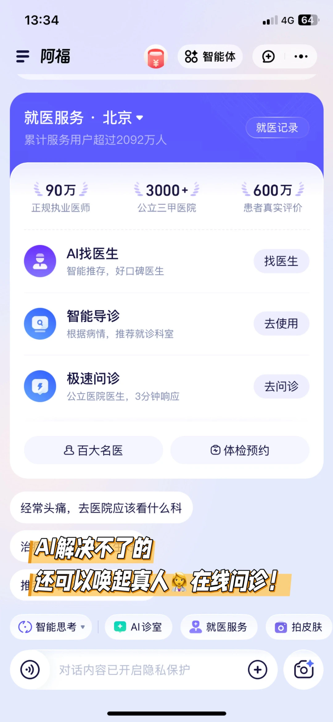 而且阿福还可以直通真人🧑⚕️在线问诊,甚至直通医院挂号!