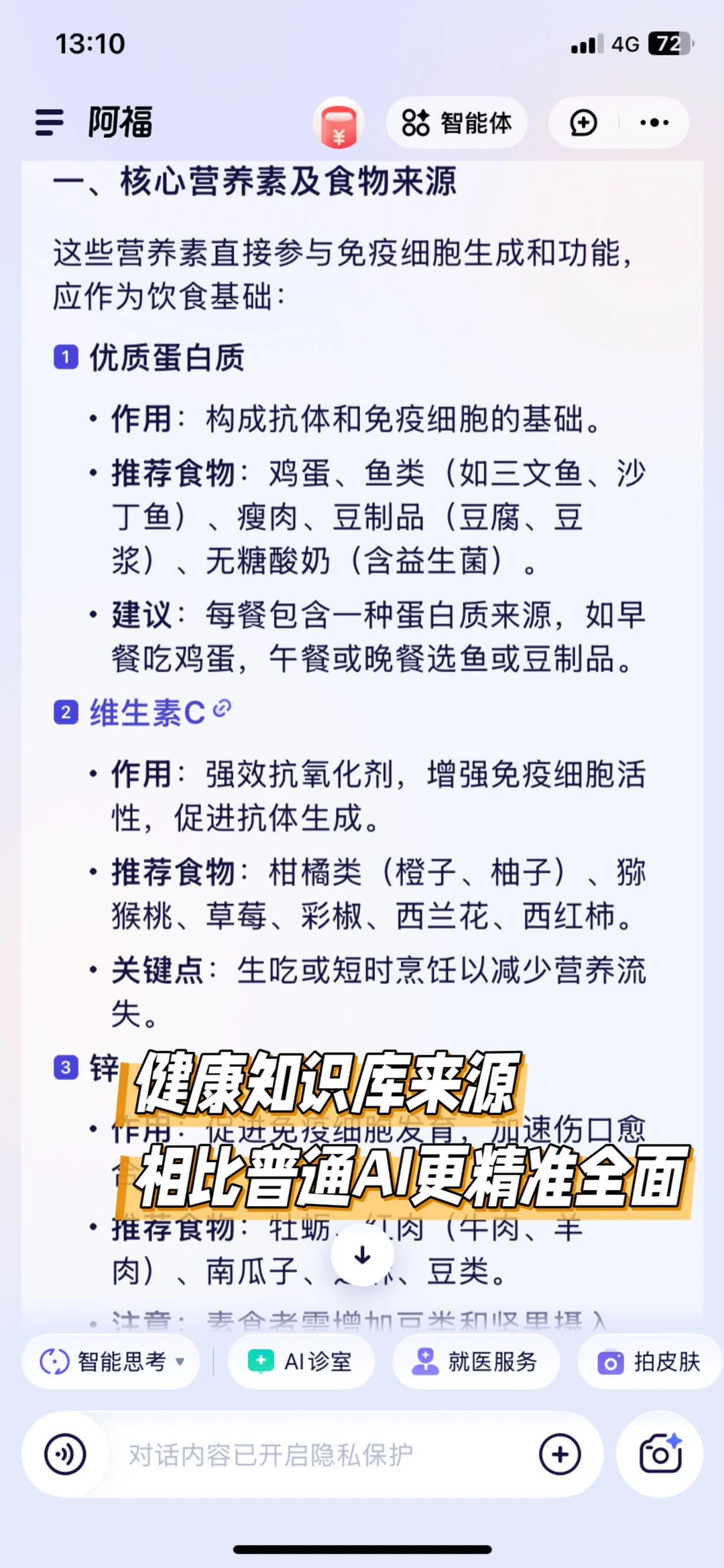 像平时大家一直在评论区提到的健康问题,都可以直接上阿福提问。它很专业也很耐心,不怕问到烦!