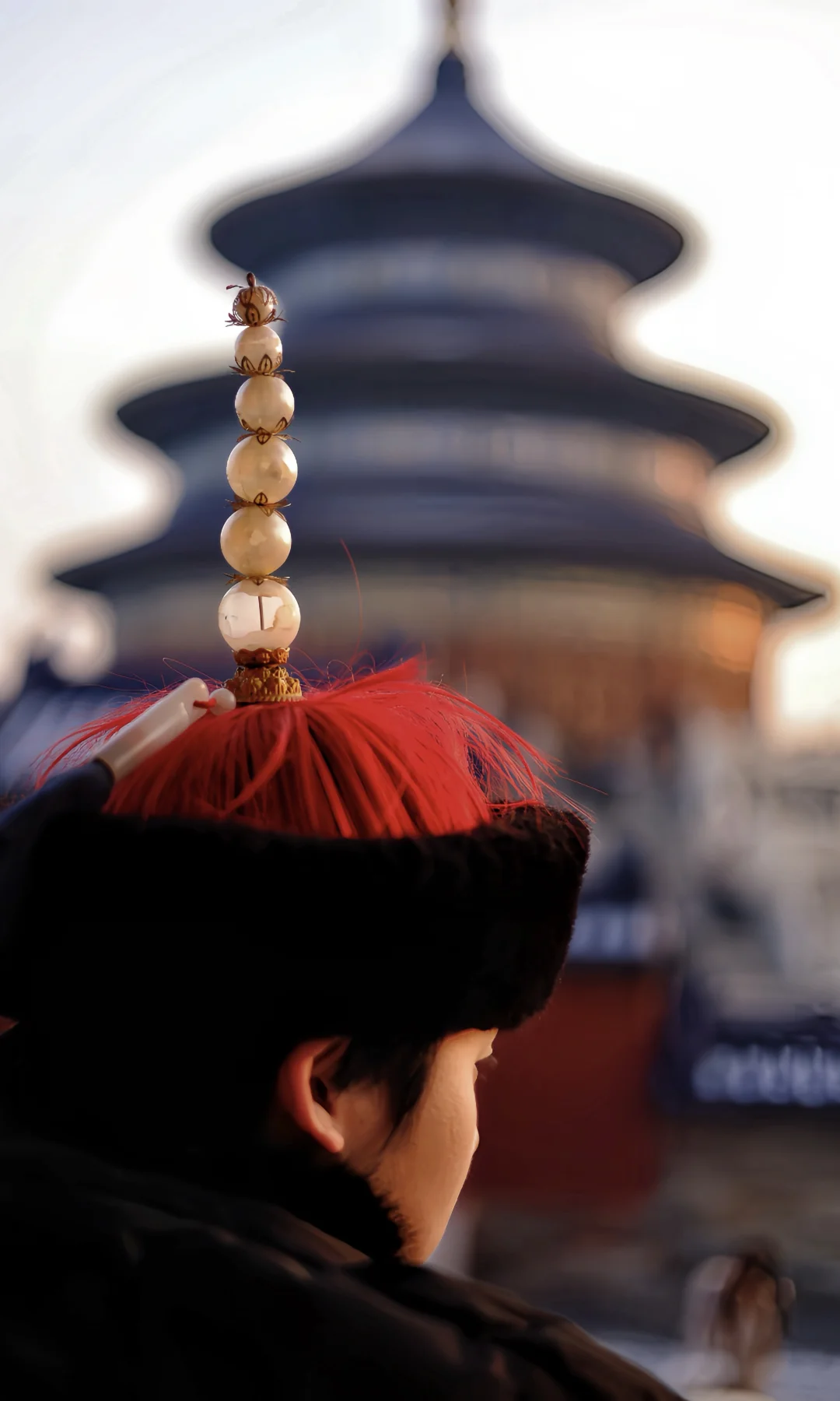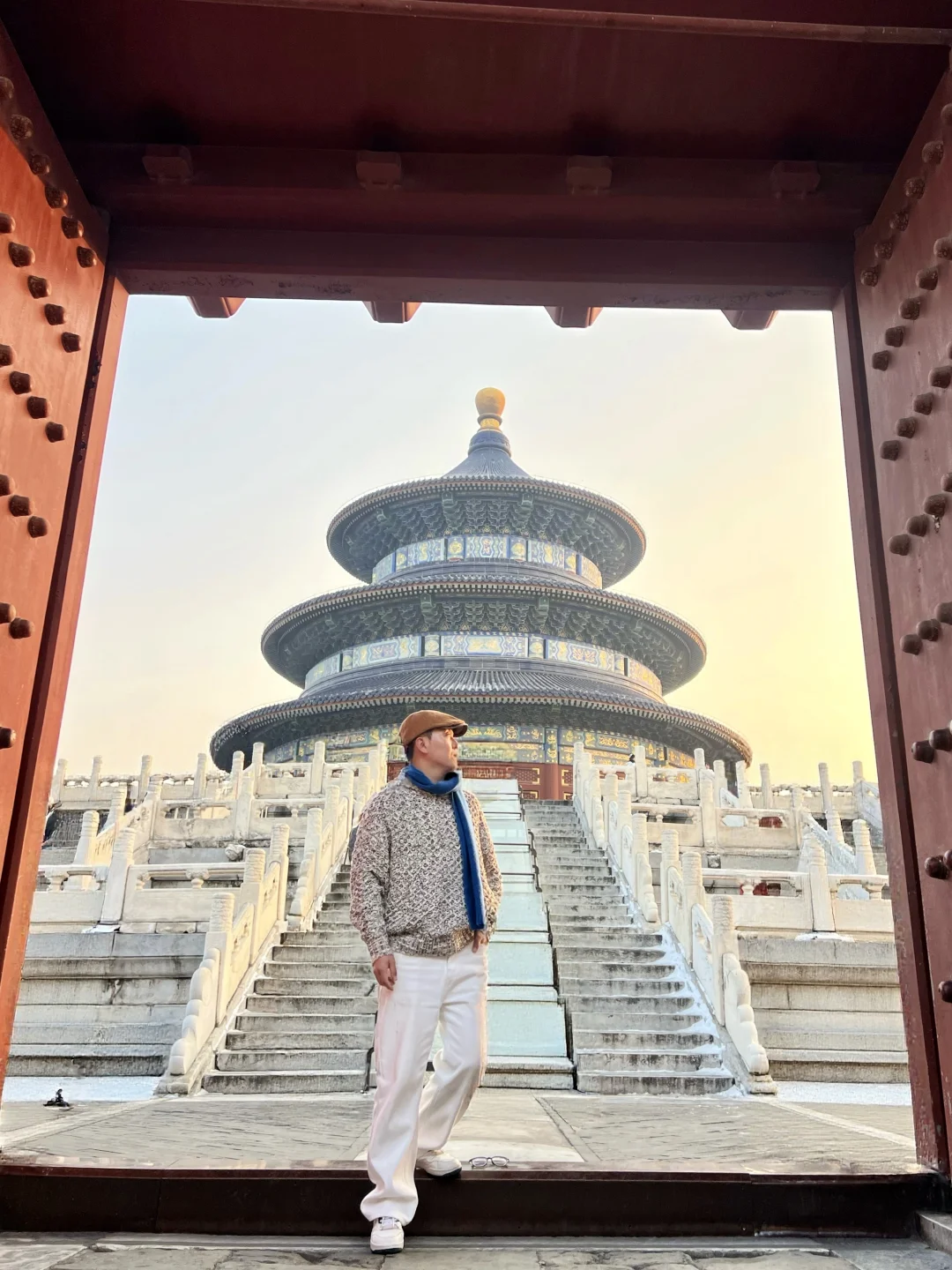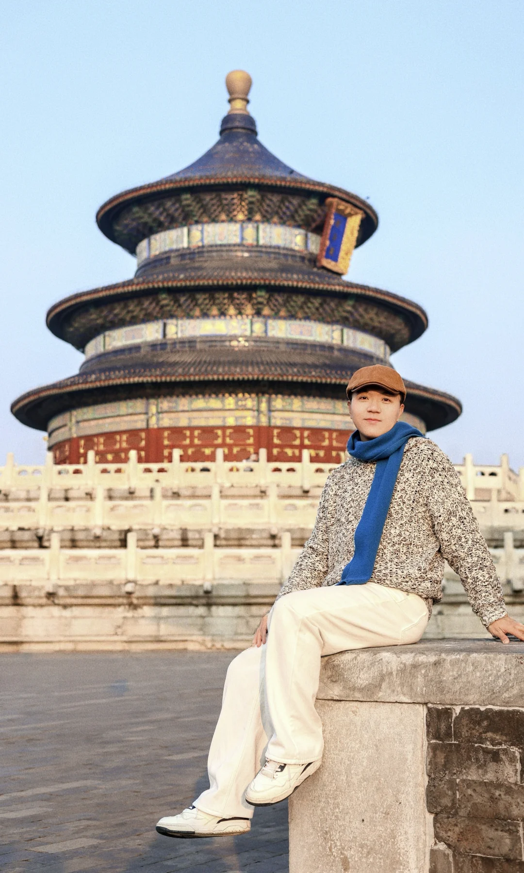 7️⃣坐在西配殿西北角的台子上,身后是祈年殿