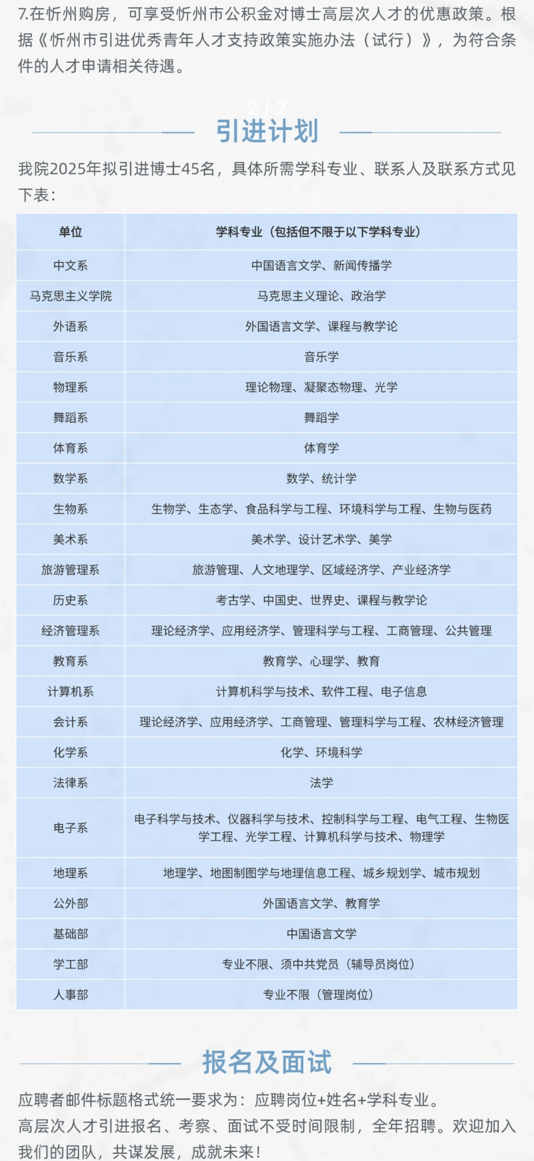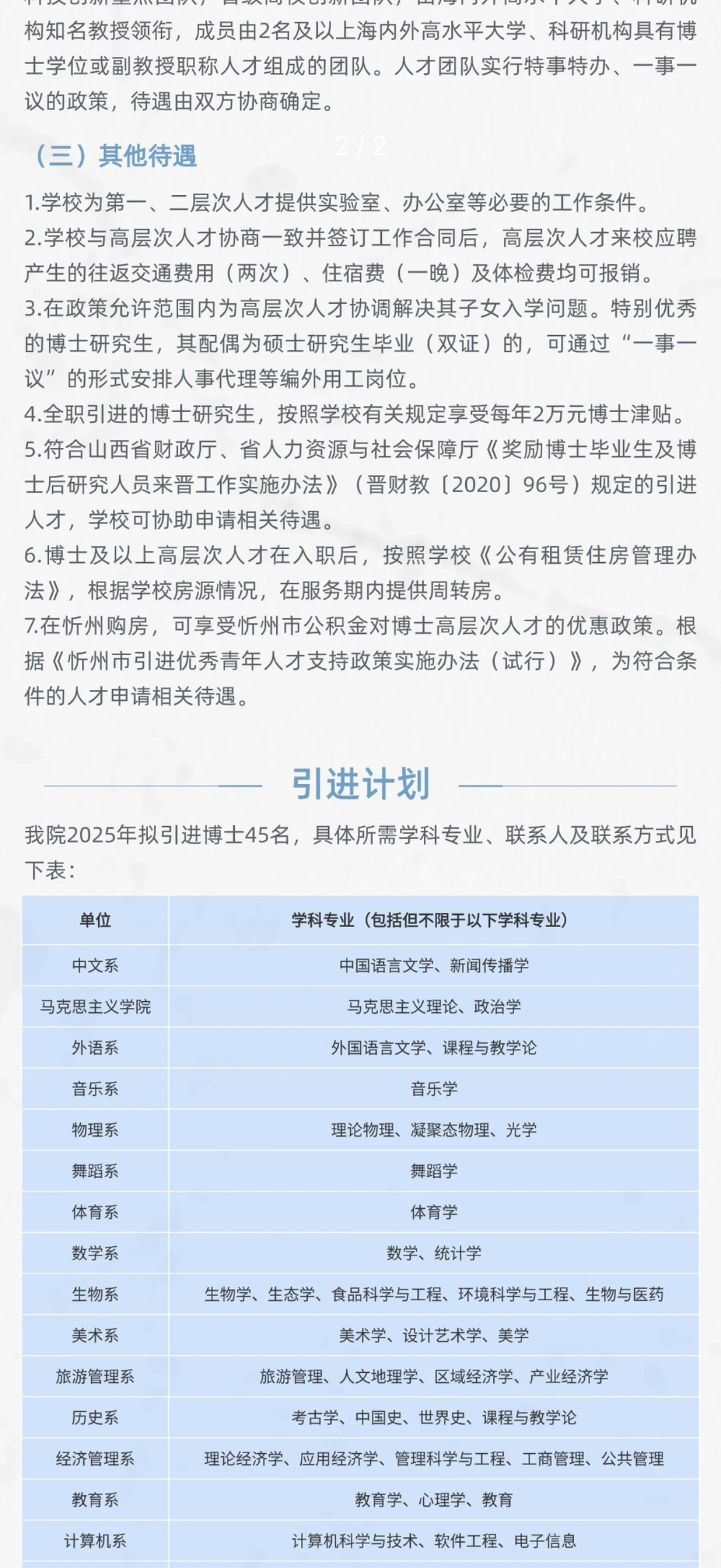 高层次人才待遇34万-1300万!忻州师范学院高层次人才引进公告博士申请考核制 工程类博士 人才引进 引进优秀人才 高校行政管理岗 拓宽就业选择 硕博圈 本土优秀人才