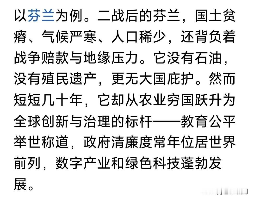 网友以芬兰为例,痛斥“发达国家/地缘/资源/机遇”论!刻意忽视了根本原因:制度设