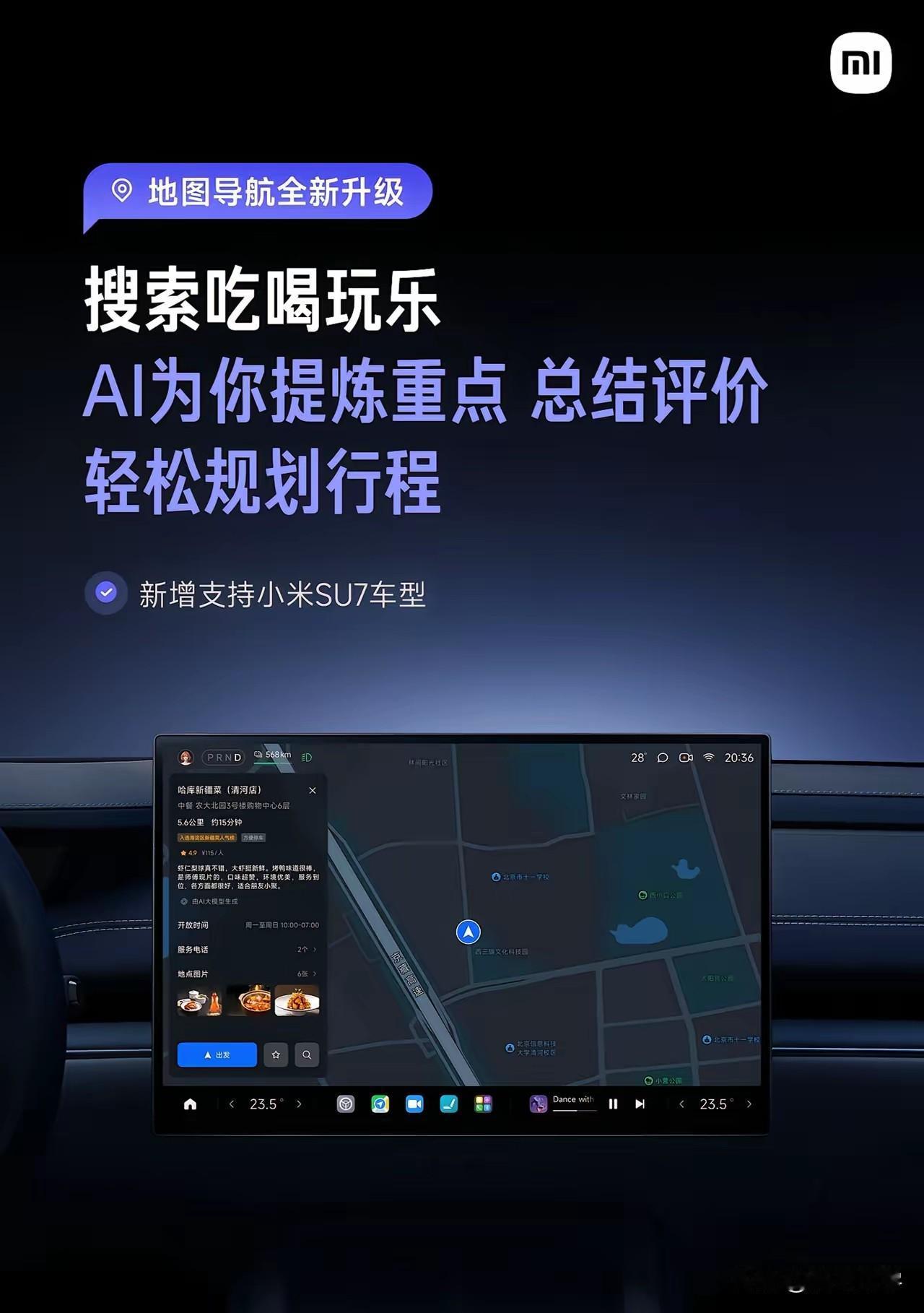 车机还得选小米的,虽然是高德地图但是可以看出,这是小米跟高德地图联合优化的导航地图渲染图,就连路边的树木都变得更像真实的。还可以在吃喝玩乐方面,利用AI帮助提炼重点,总结评价轻松规划行程。红绿灯倒计时都不算啥,因为那是在导航行驶中显示的,这一次在非导航的时候也能显示红绿灯倒计时。常用的地址还可以重命名,让你语音导航更加简单便捷。 总而言之,小米作为一家科技公司,在软件优化方面肯定是领先于行业的。高德地图 高德地图app 高德AI导航 高德ai地图 车机高德地图 高德地图测试版 高德北斗地图 车机地图