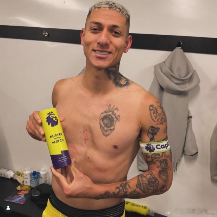 里沙利松社媒庆祝赢球:全场最佳、2粒进球被吹、1次助攻水晶宫0比1热刺英超联赛