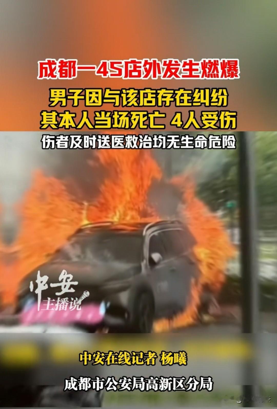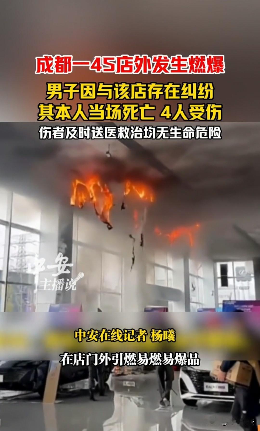 成都,54岁男子因与4S店存在纠纷,在店外点燃易燃易爆物品,最终导致自己身亡,另有4人受伤。所幸送医及时,这四名伤者暂无生命危险。 该男子于2022年在这家4S店全款购买了一台车,因对车辆配置不满意,多次到店协商,希望得到满意的解决方案。 但店员态度不佳,也未能给出合理方案,男子便一次次上门交涉,一次不行就两次,两次不行就三次。 从2022年到2025年这三年间,男子始终在为这件事奔走,他认为自己作为消费者,不能任由商家摆布。 然而前后交涉十余次都没有结果,2025年12月28日,男子再次进店协商时,店员已心生不耐烦,觉得男子过于较真。三年里,店员因这件事被反复打扰,早已心力交瘁。 因此店员对男子态度恶劣,本就心怀不满的男子与对方发生了争吵。 这场争吵愈演愈烈,直接触发了男子的报复心理。他匆匆跑出店外,不知从何处找来一瓶易燃易爆物品,在店外直接点燃。 或许他对这类物品的性能并不了解,点燃后未能及时撤离,最终自己受到了最严重的伤害,当场身亡。 他可能只是想威胁对方,制造动静逼迫店家尽快处理问题,却没想到给自己走上了一条不归路。 店内的店员看到他的举动后,上前试图阻止,无奈男子情绪激动,直接点燃了物品。爆炸声巨大、威力不小,上前阻止的四名店员也因此受伤。 伤者躺在地上痛苦喊叫,伤势不轻,周围群众赶紧拨打120,伤者被及时送医。目前来看,这四人暂无生命危险。 网友们看到此事后唏嘘不已:多大的怨、多大的仇,要用自己的生命去换所谓的公平啊! 也有人表示:如果不是被逼到绝境,谁会在三年里十次上门讨要说法?肯定是店家存在问题。 目前涉事店铺已关门整改,相关人员也已被控制,警方会彻查事情的来龙去脉,依法追究相关人员的责任。 此次燃爆事件是男子故意点燃物品所致,其本身存在过错,但因其已身亡,由此造成的损失,可能需要由其遗产继承人在遗产范围内承担赔偿责任。 他的妻子和子女并非必须自掏腰包赔偿,若男子留有遗产,继承人需以遗产为限进行赔付;若男子没有遗产,继承人则无需承担赔偿责任。 至于4S店是否存在处理不当、欺诈消费者的行为,还需等待后续调查。如果事件确因店家的过错引发男子情绪失控,店家也应承担相应的赔偿责任。 店家需赔偿的是家属的精神损害抚慰金等相关损失。若店家能及时妥善解决问题,站在消费者的角度考虑,男子或许不会做出极端行为。 因此,燃爆事件造成的直接损失,需从男子的遗产中列支赔偿;而若因店家处理问题不当、店员服务态度恶劣等因素,导致男子采取极端行为身亡,店家也应向其家属赔偿相应的经济损失。 1、男子点易燃易爆品的行为,按《刑法》第一百一十五条,属于以危险方法危害公共安全罪,本来要判十年以上甚至死刑。 但他人已经没了,按《刑事诉讼法》第十六条,就不追究刑事责任了。 不过他造成的4人受伤损失,得按《民法典》第一千一百六十一条来,有遗产就用遗产赔,没遗产或家人不继承,家人就不用掏钱。 2、4S店这边,要是查出来卖车时配置货不对版,搞消费欺诈,就按《消费者权益保护法》第五十五条,退男子买车的全款,再赔三倍车钱。 另外,店员三年态度差、不解决纠纷,要是法院认定这和男子走极端有因果关系,按《民法典》第一千一百六十五条,4S店得给男子家属赔精神损失费之类的。 3、最后俩重点:一是4S店的责任不能凭男子维权多次没结果就定,得有实打实的证据; 二是4S店关门整改只是行政监管措施,不算定责,最终谁该担责,得等警方调查、法院判决才算数。 对于此事,大家如何看待呢? 素材来源于,中安在线2025年12月28日