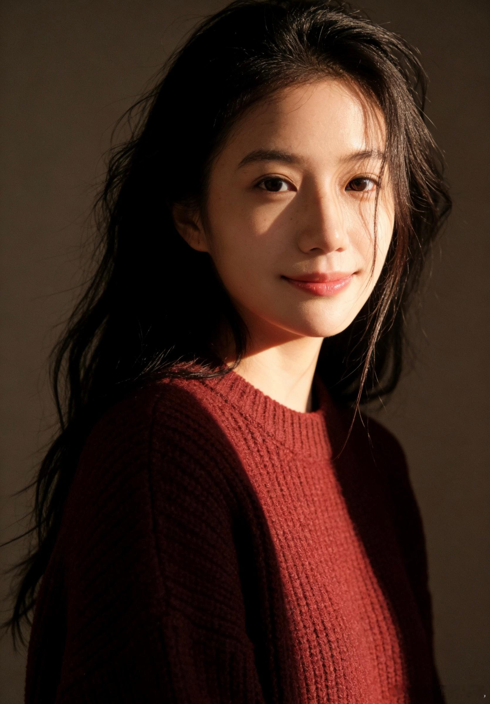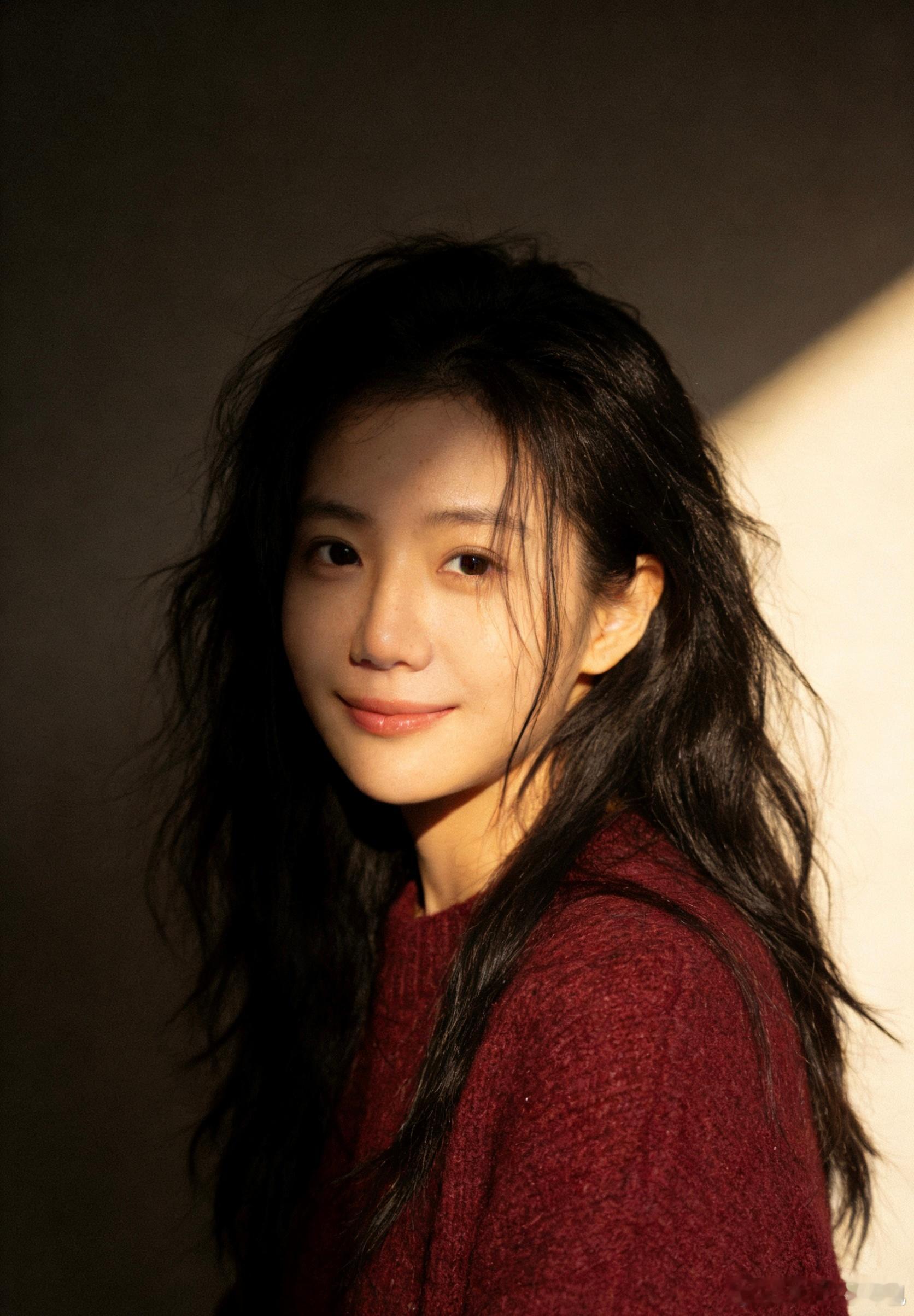 豆包的生图技术太细致肌肤的纹理和闭口都有指令如下👇帮我生成图片:以上传照片中的人物为原型,去除所有背景服饰和发型,在完全保留人物原生面部特征、五官特点的基础上进行艺术化创作,生成10张照片,一幅具有电影感的胶片肖像。生成一张人像肖像照,主体是年轻东亚女性,留着蓬松凌乱的黑色长发,几缕发丝垂在脸颊前,身穿酒红色针织毛衣,眼神略带疏离感望向镜头。光线采用暖调侧光,从画面右侧打向人物,形成明暗对比强烈的伦勃朗光效,突出面部轮廓与皮肤的细腻肌理,背景为纯暗调的暖棕灰色墙面,无多余元素。风格为肖像风的情绪人像,画面带有细腻的胶片颗粒感,色彩以暖黄与酒红为主调,整体氛围慵懒又有故事感,面部保留自然的雀斑细节,唇色为裸粉调,妆容清透无浓重修饰。追求动作角度多样化。原比例。