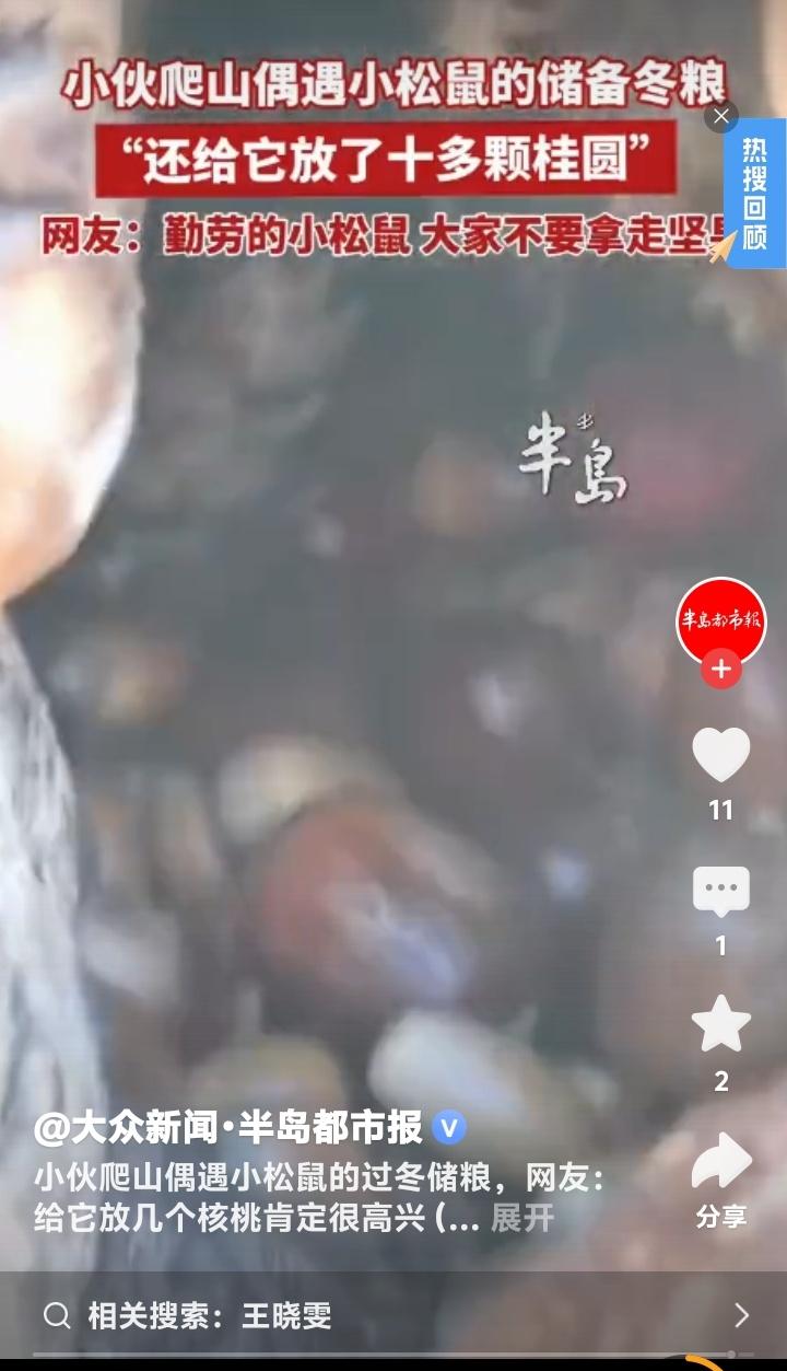 青岛小伙崂山爬山惊遇松鼠藏粮,暖心投放桂圆引全网泪目:别动它的坚果,那是它的整个冬天! 初冬的青岛崂山景区,层林尽染。一位爬山小伙偶然驻足,却在枯叶堆里窥见一场微小而盛大的筹备——一只松鼠正将颗颗坚果塞进树根缝隙,那是它为自己攒下的整个冬天。小伙没有惊扰,反而从背包里掏出十多颗桂圆,轻轻放在树洞旁。 这个随手拍下的视频瞬间点燃网络。镜头里,松鼠双爪捧栗的模样,像极了深夜加班后囤粮的我们。它不懂人类世界的房贷车贷,却同样在为未知的寒冬拼尽全力。那份专注,让屏幕前无数人心头一颤:原来众生皆在负重前行。 网友的留言区悄然化作情感树洞。有人调侃“想偷一颗试试它会不会数数”,更多人却严肃提醒:“别拿!那是它的命。”一句玩笑背后,折射出都市人对纯真生存状态的遥远向往。我们笑谈松鼠的“年终考核”,何尝不是在自嘲被KPI追赶的人生? 但故事悄然反转。有眼尖网友扒出旧闻:几年前,真有松鼠因藏粮被偷而在树杈上“自缢”。动物学家解释,这并非传说,松鼠依赖空间记忆觅食,粮仓被毁可能导致应激行为。那个看似滑稽的“上吊”传闻,忽然浸满了生命残酷的底色。 于是话题走向深沉。我们为何被一只松鼠破防?或许因为它活成了我们渴望的模样:每一份努力都看得见果实,每一次囤积都只为过冬。反观人类,加班熬出的报告可能瞬间作废,攒下的存款赶不上房价。松鼠的粮仓是真实的,我们的安全感却常是虚拟数字。 小伙投放的桂圆更成象征性 gesture。那不是施舍,是来自一个物种对另一个物种的共情。就像深夜给外卖员打赏的你,就像给流浪猫放碗水的邻居。这些微光般的善意,让我们在冰冷算法时代,触摸到温度尚存的人性底色。 值得玩味的是冲突现场。有人谴责偷栗者,有人抱怨松鼠破坏庄稼。这哪里是争论松鼠?分明是城市化进程中人与自然关系的微妙投射。当森林退成公园,当动物闯入小区,我们该以何种姿态与它们共享这片土地? 回过头看,松鼠从不关心热搜。它只是按千百年来的本能活着,却意外照见了人类社会的生存焦虑、情感共鸣与伦理困境。那个树洞藏的何止是坚果?更是现代人遗失的、关于“生存本身即意义”的原始答案。 这个冬天,也许我们该学学松鼠:认真囤积每一份温暖,勇敢守护自己的“粮仓”。毕竟,风雪来时,能倚靠的唯有那些我们亲手收藏的光。 (来源:大众新闻-半岛都市报及松鼠生态研究资料及网络热议整合) 松鼠囤粮看哭成年人 人类共情时刻