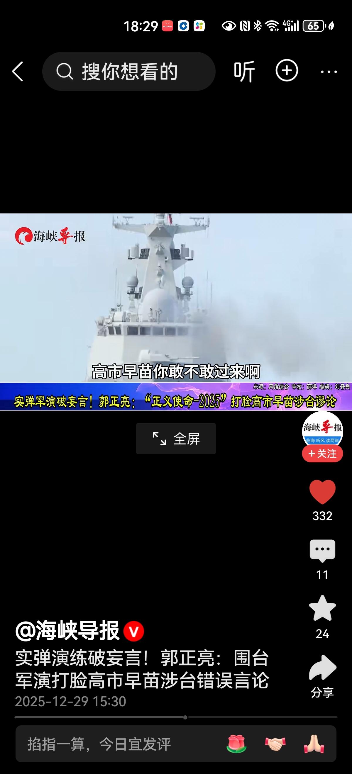 打的就是高市早苗的脸,高市迟迟不肯收回涉台错误言论,解放军围台军演,一招破局。就像郭正亮说的那样,现在台湾好像有事,你怎么不来呢!其实,高市早苗就是嘴硬,她的野心不在台海,而是想借此不再履行战败国的义务,想让日本军国主义复活。这是所有战胜国所不能容忍的,也是世界一切有正义感的国家所不能接受的。解放军围台军演就是要狠狠打高市的脸,让她明白,敢在台海动武,就会让日本全境沦为战场!