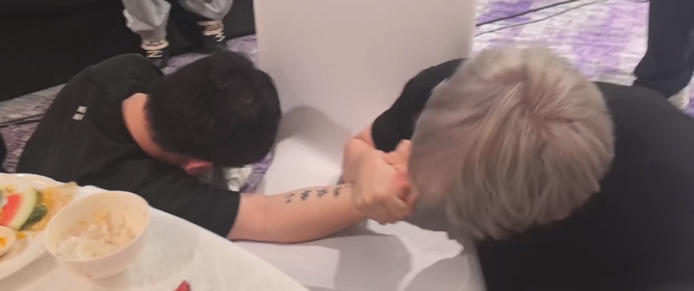 甲哥:眼子步faithbian后尘了,没事少扳手腕,越是自信的人越容易骨折好吧,faithbian也是有点肌肉,后来被姜岸扳骨折了。眼子可能是上次狗哥结婚的时候,未曾找到对手。dota2