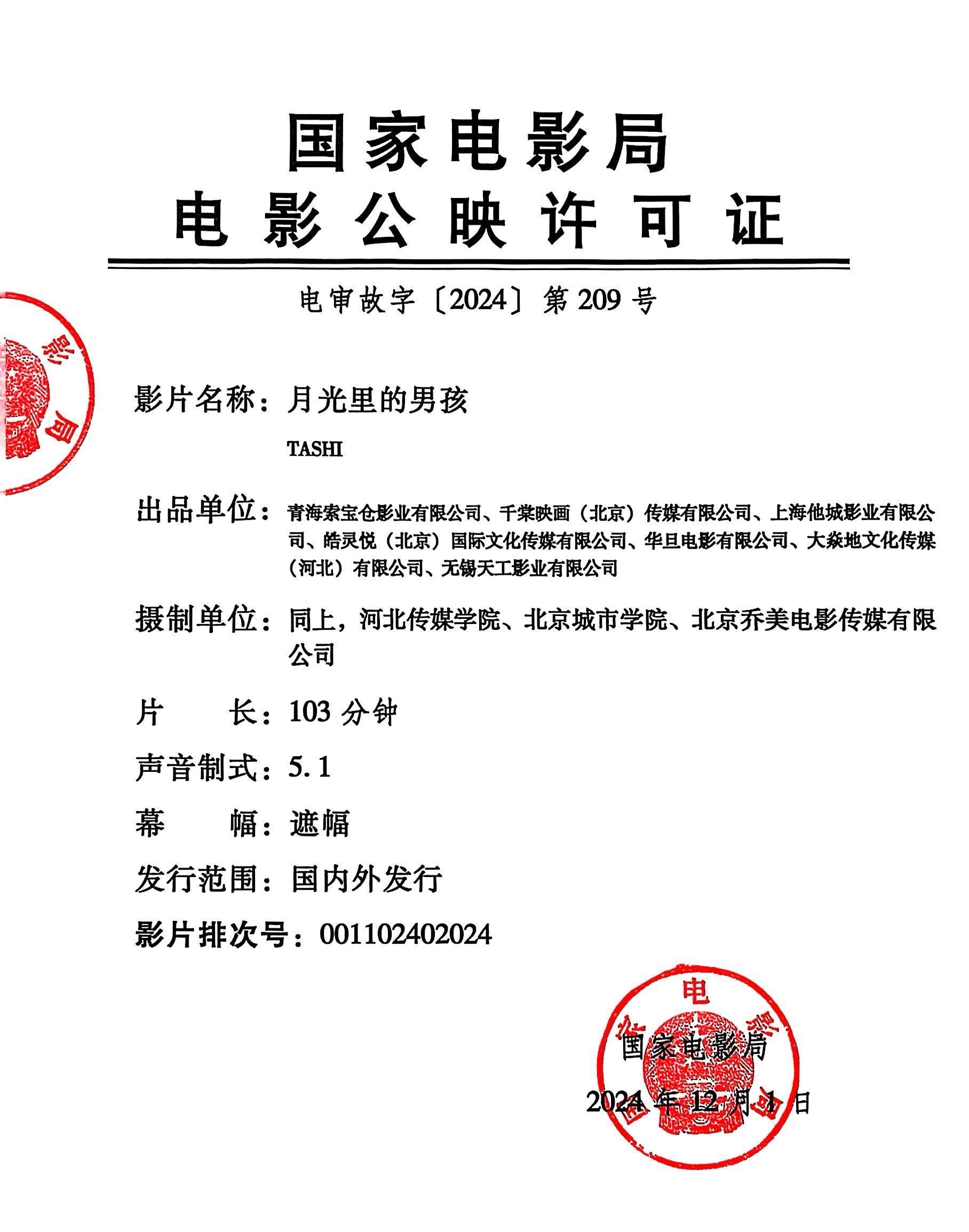 影讯 01.06艺联专线上映万玛才旦监制月光里的男孩 影片信息国 别:中国类 型:剧情片 长:103分钟(与FIRST展映版一致)幕 幅:遮幅声 制:5.1语 别:藏语/普通话发行版本:数字2D发行范围:全国艺术电影放映联盟加盟影院及青海省、西藏⾃治区、四川省⽢孜藏族⾃治州、四川省阿坝藏族羌族⾃治州放映期限:2026年01月06日 - 2026年02月05日