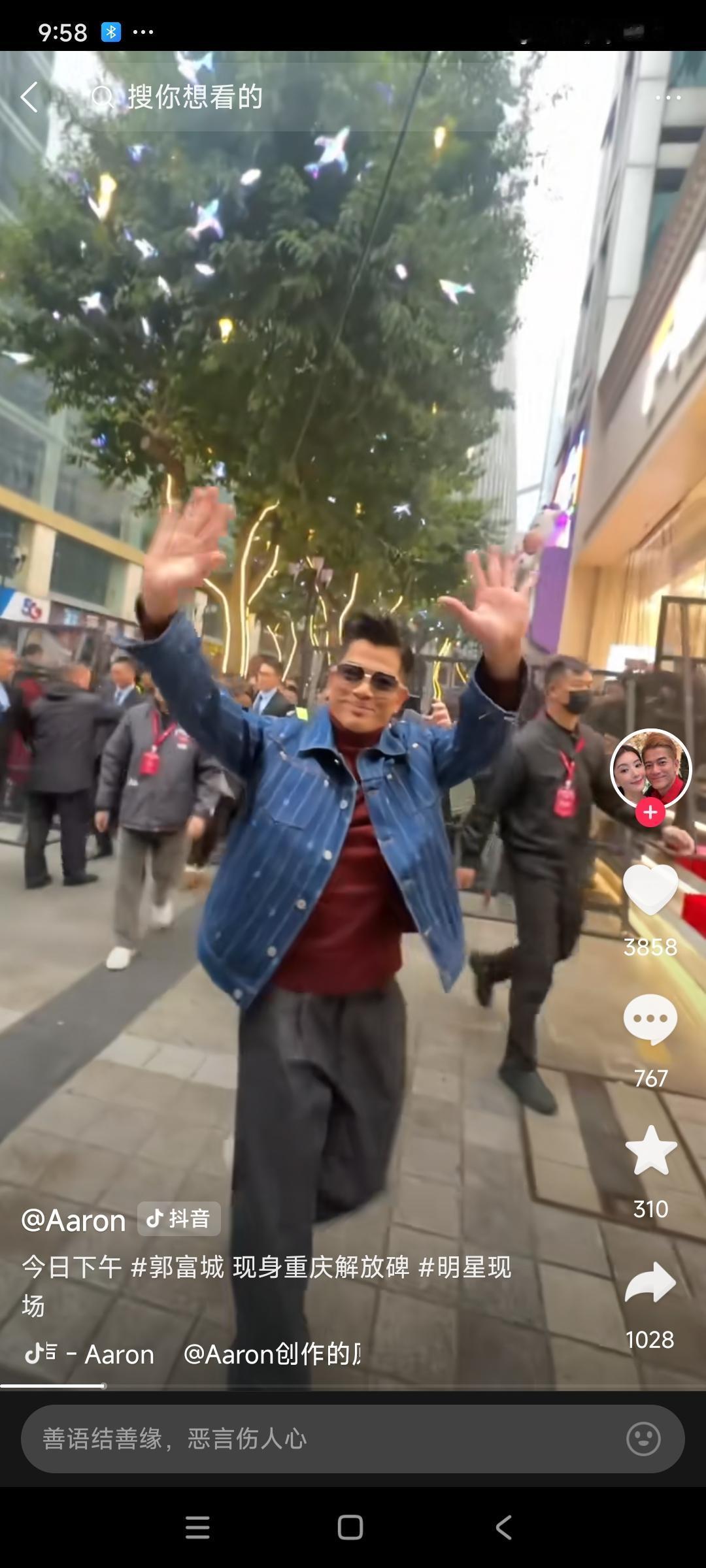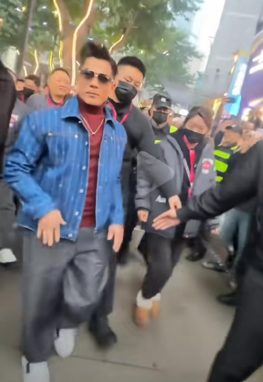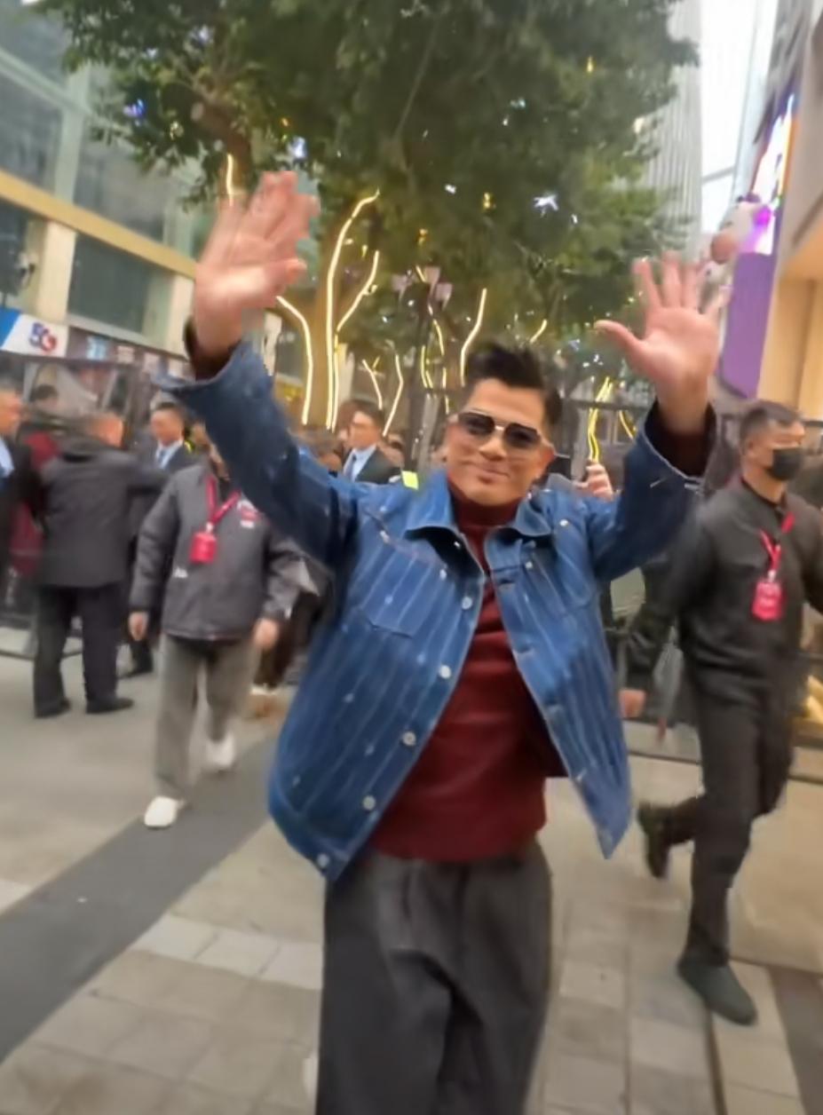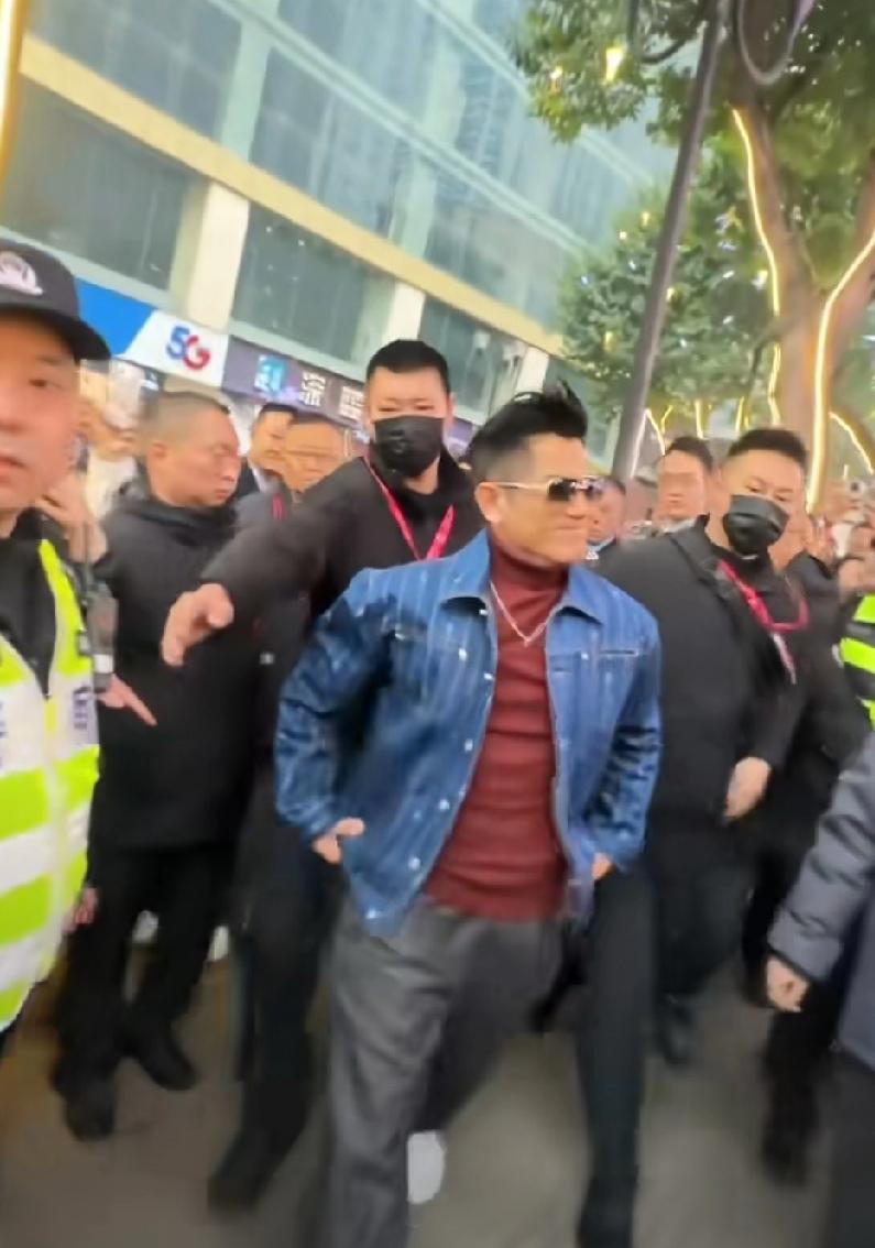 天王郭富城现身重庆解放碑,参加活动,现场人山人海,粉丝们接近疯狂,保镖、保安左右保护,郭富城为答谢粉丝,在舞台上随性秀了一把舞技,引来阵阵尖叫!