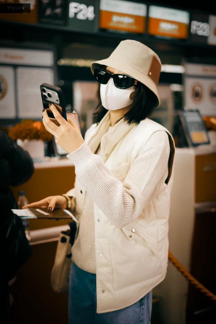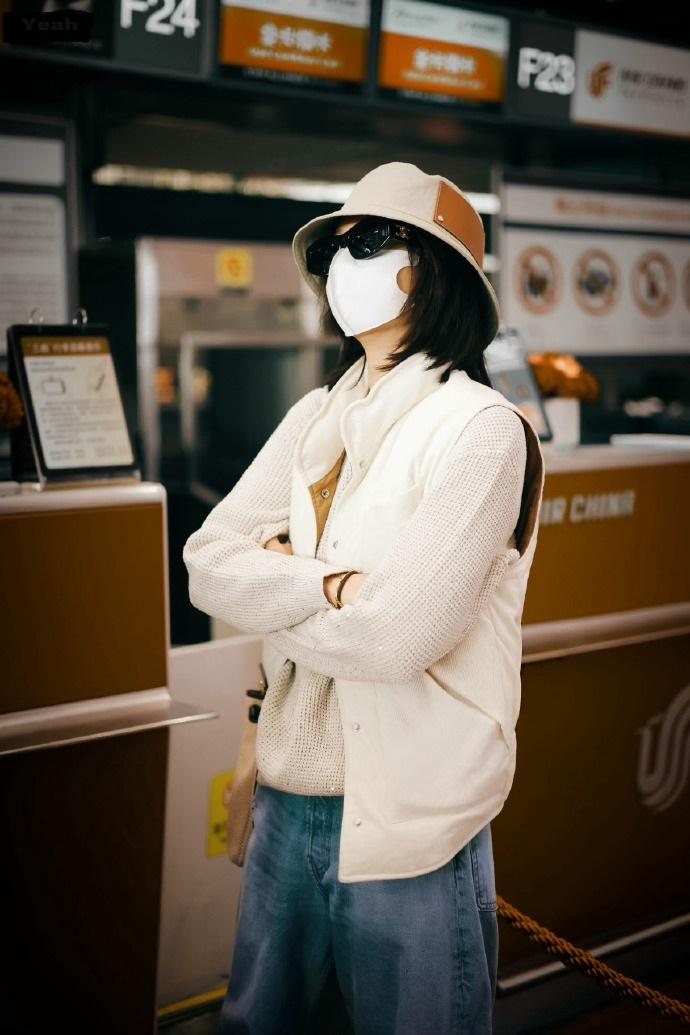 最近高叶现身机场,她这次搭配的很有高级感,看起来年轻又迷人,真的好漂亮。 高叶里面穿白色针织衫,外面套着白色马甲,两件衣服叠穿的效果很出众。也能够彰显出满满的层 次感。 她下身穿蓝色牛仔裤,头戴时尚的渔夫帽,确实是特别的有潮流时尚气息。 高叶留着超有个性的发型,还搭配了黑色的墨镜,整个人显得好酷。 她背着一款驼色的包包,增添了高贵之美,越变越有知性感了,看上去还非常的潇洒,不得不说高叶真的是天生丽质。