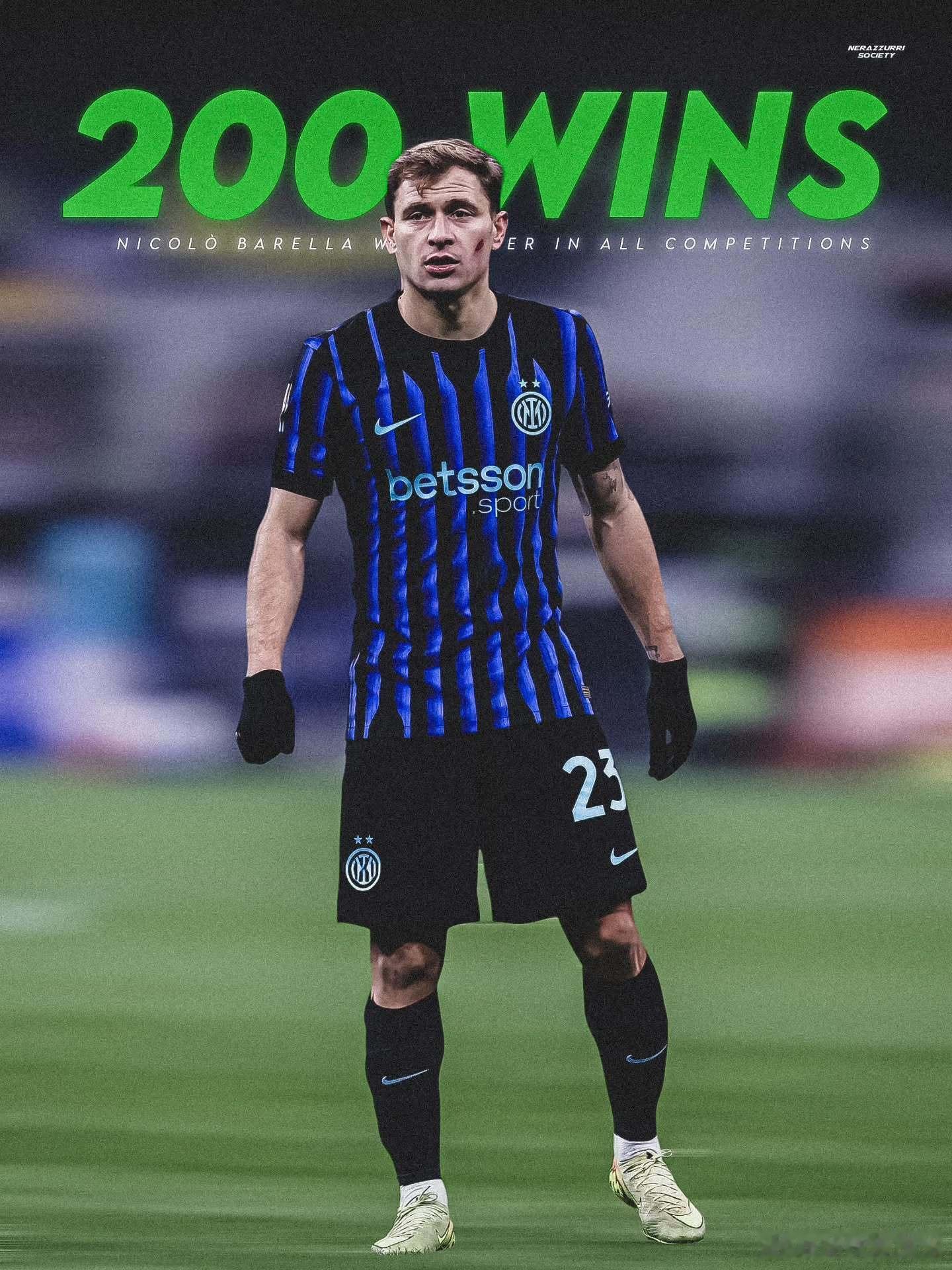 巴雷拉代表国际米兰取得200场胜利国际米兰意甲欧冠
