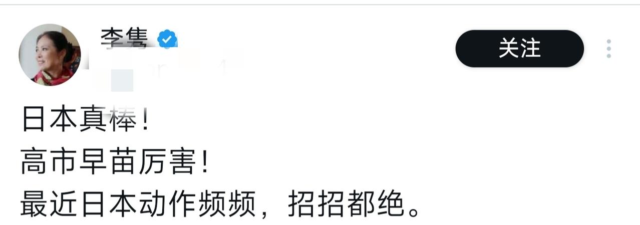 居然还有人猛夸: “日本真棒!高市早苗厉害! 最近日本动作频频,招招都绝。” 一看就是润出去的中国人, 真是气死人了!