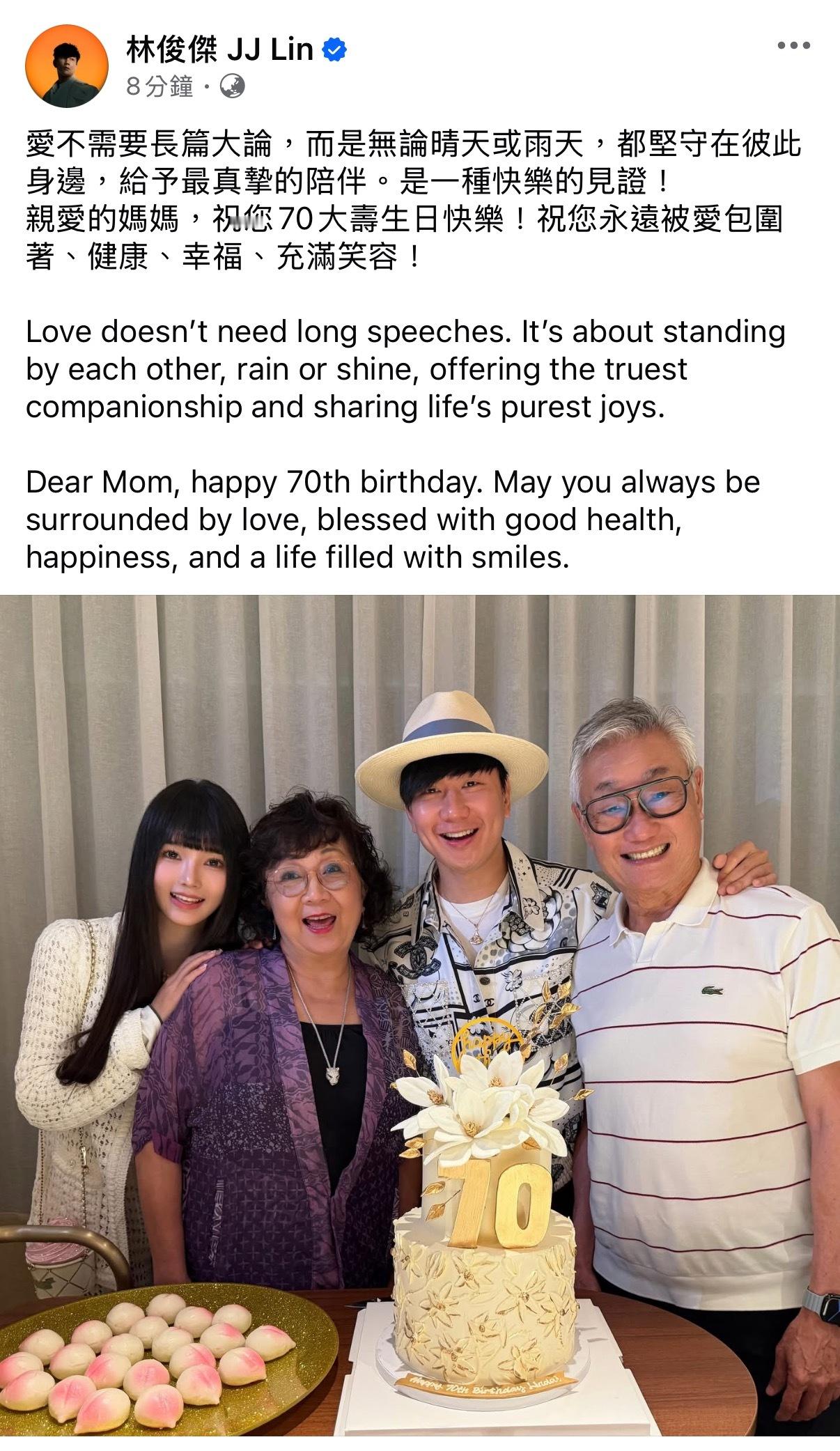 林俊杰发文为妈妈庆生🎂更官宣了女友,她正是年初传出绯闻小20岁的广东网红「七七」!林俊杰官宣恋情