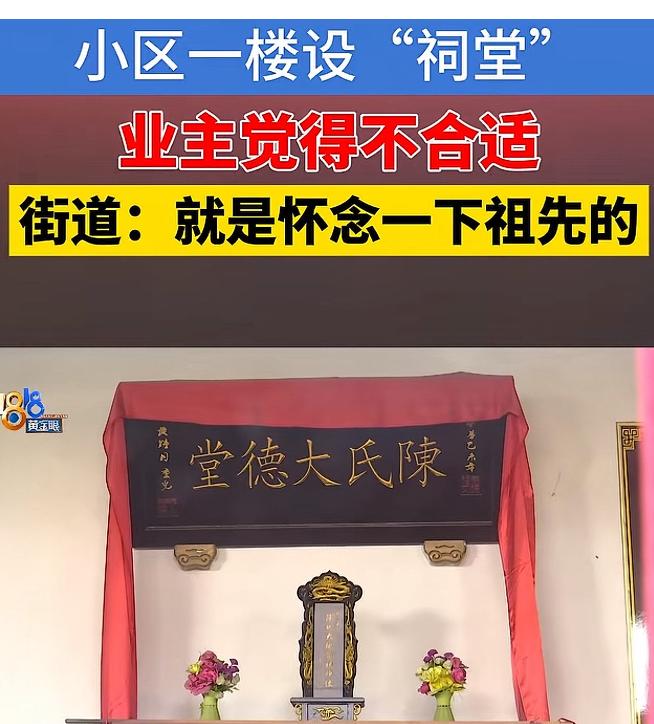 浙江宁波,女子一直以为自家楼下的3间商铺开的是医馆,后来她发现不对劲了,商铺里面不仅有牌位,还有人过来祭祖,才知道开设的是祠堂。女子不干了,认为这个地方人来人往,将祠堂开设在这里,影响自己的生活,于是,找到街道讨要说法。街道负责人称,就是祭拜一下祖先,没搞白事等封建迷信活动。女子对此还是不能接受,找来媒体曝光此事,让网友给评评理。 杨女士小区是回迁安置的,楼下临街有三间底商,面积不小,但平时基本不怎么开门,窗帘常年拉着,门也关得严严实实。 门头那儿隐约能看到“大德世家”几个字,玻璃门上还贴着一堆“尊老爱老”之类的标语。杨女士和邻居看着就默认:这八成是中医馆、养生馆那种地方,不营业可能是生意不好,或者只接熟客,反正也不碍事。 直到今年冬至那天,事情突然变味了。 那天小区里比平时热闹,杨女士发现有不少人手里拎的不是药袋子,也不像来按摩的,反而是香烛、水果、纸钱这类东西,来来回回往那三间商铺里进。 她越看越不对劲:你要是看病,哪有拎一把香烛的?心里那点好奇和不舒服一下就上来了,她干脆凑近看看。 门没关严,留着条缝。杨女士从门缝里往里一瞄,整个人都发毛了。里头压根没有什么大夫,更没看到诊桌药柜。正中间挂着一块匾,写着“陈氏大德堂”,底下明晃晃立着“陈氏大德始祖神位”。 桌上摆着香炉蜡烛,有的还点着,烟一缕一缕往上飘,四周墙上挂着家风家训那种字画,看着特别“庄”。说白了,这哪是医馆,这是祠堂,还是在小区楼下的商铺里。 杨女士当场就觉得后背发凉。不是她矫情,是换谁都膈应:你住着住着,突然发现楼下不是店铺,是别人摆牌位祭祖的地方,这心理落差太大了。 平时小孩在楼下跑、老人遛弯儿,旁边却是香火供奉的场所。再加上冬至、清明这种日子人一多,烧香的味道、香灰、说话声、进进出出的动静,对楼上的住户来说,既是心里不舒服,也是实实在在的打扰。 她越想越气,就去找街道办想要个说法,至少得弄清楚:这算不算违规?能不能让它别在居民楼底下搞? 可街道那边给的答复,让她很无力,大概意思是:这不是封建迷信,也不是办白事,就是陈家后人寄托一下感情,缅怀祖先。 街道还解释了背景:朱家苑是几个村拆迁合并起来的,其中连城村陈姓人多,是大族,以前有老祠堂,拆迁后祠堂没了,族里那些家谱资料、家族历史的东西没地方放,他们也舍不得那种“族人凝聚”的感觉散掉,所以才把这几间底商弄成现在这样。 平时门锁着,也就冬至、清明这种日子开开门拜一拜,频率不高,让大家理解一下。 这话听着挺“有人情味”,但杨女士听完更不舒服了,因为问题根本不在“你们缅怀不缅怀”,而在“你们能不能在这里这么搞”。 她觉得街道是在把问题说成“邻居别太敏感”,可她关心的是:这地方是小区底商,旁边就是大家天天走的路,大家交了物业费住在这里,你们把它改成祠堂,有没有问过其他业主?有没有走过该走的程序? 网上也吵开了。有的人说,拆迁以后留个念想很正常,家族团结也不是坏事。 但更多人站在杨女士这边:安置房也是居民住宅,小区底商本来是用来做生意的,你把祭祀场所开在楼下公共区域旁边,影响到别人生活了,不能只凭“我们有传统”“我们想纪念”就算数。 杨女士之所以敢曝光,其实底气也在这儿:按相关规定,商铺归商铺,它不是想改啥就能改啥。 就算这三间店铺有人有使用权,但用途从“商用”变成“祠堂”,这属于性质很特殊的改变。 尤其是这种容易产生烟味、噪音、引发邻里不安的用途,更不可能只靠几位族里长辈拍板,或者街道一句“多包容”就能定下来。很多情况下,得征得小区绝大多数业主同意才行。 现在这事还僵着。那三间铺子还是窗帘拉得死死的,外面看着像没事一样,但对杨女士来说,知道门后面摆着牌位那一刻起,这事就像心里扎了根刺:她住的地方是家,不是别人家族祭祀的场地。 至于最后怎么处理,是继续“各说各话”,还是按规定走程序、给邻居一个交代,大家都在等后续。