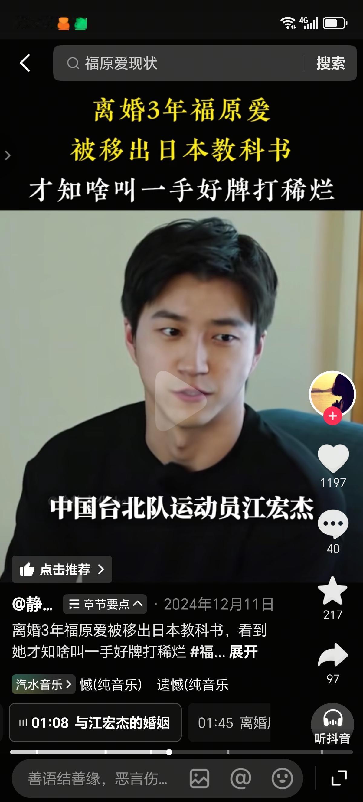 乒乓球名宿福原爱把孩子们和老妈留给前夫湾湾运动员江宏杰,自己跑回日本和已婚的横滨男去酒店出双入对。还被该男子妻子控诉是福原爱插足别人婚姻才导致对方离婚,并向福原爱索赔1100万日元(493680人民币)。 福原爱的儿子被日本法院判给了江宏杰,间接证实了她对婚姻的不忠。让人不能理解的是她一直否认自己出轨,俩人是在离婚后才走到一起的。解释只是单纯的邀请对方到自己的公寓里来。可惜很快就被横滨男前妻指出他俩一直有来往,如今俩人还结婚了。 福原爱和前夫结婚期间难受吃不下东西,老公怪她不善待孩子,吃多了又被说胖。看牙医张开嘴巴说她DF,大姑姐说她隐私蹭流量,婆婆说她是会下蛋的金母鸡,丈夫借着她名义接代言吸金。 福原爱出轨风波的操作也把自己一手好牌打的稀巴烂,本来是乒乓宠儿,教科书级别人物,结果被打上了不伦艺人的标签,还被赶出了小学励志教材。原本的电台解说工作没有了,自己开的公司也倒闭了,靠着零星的代言费和到我们国家来参加商业活动维持生计。