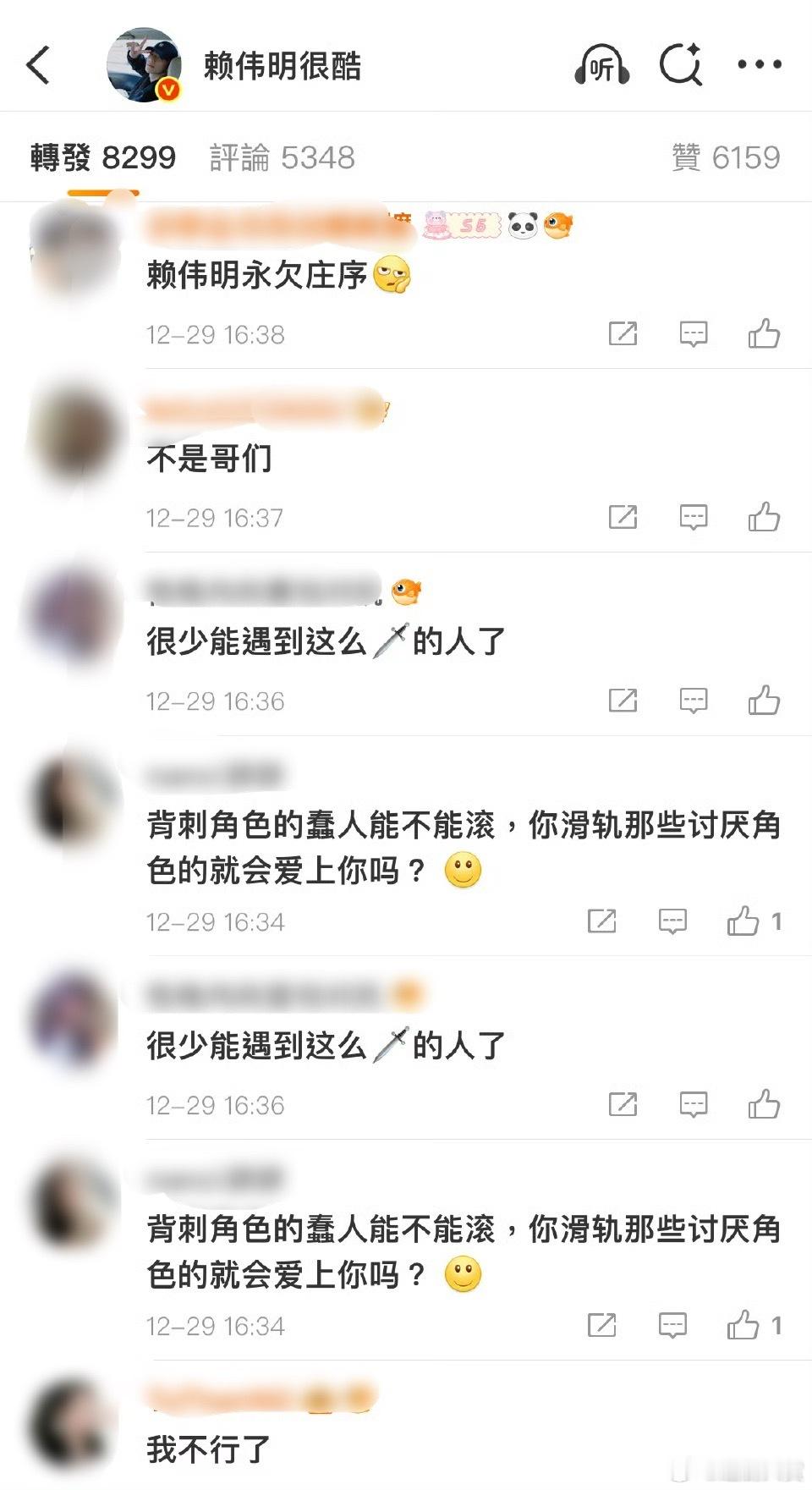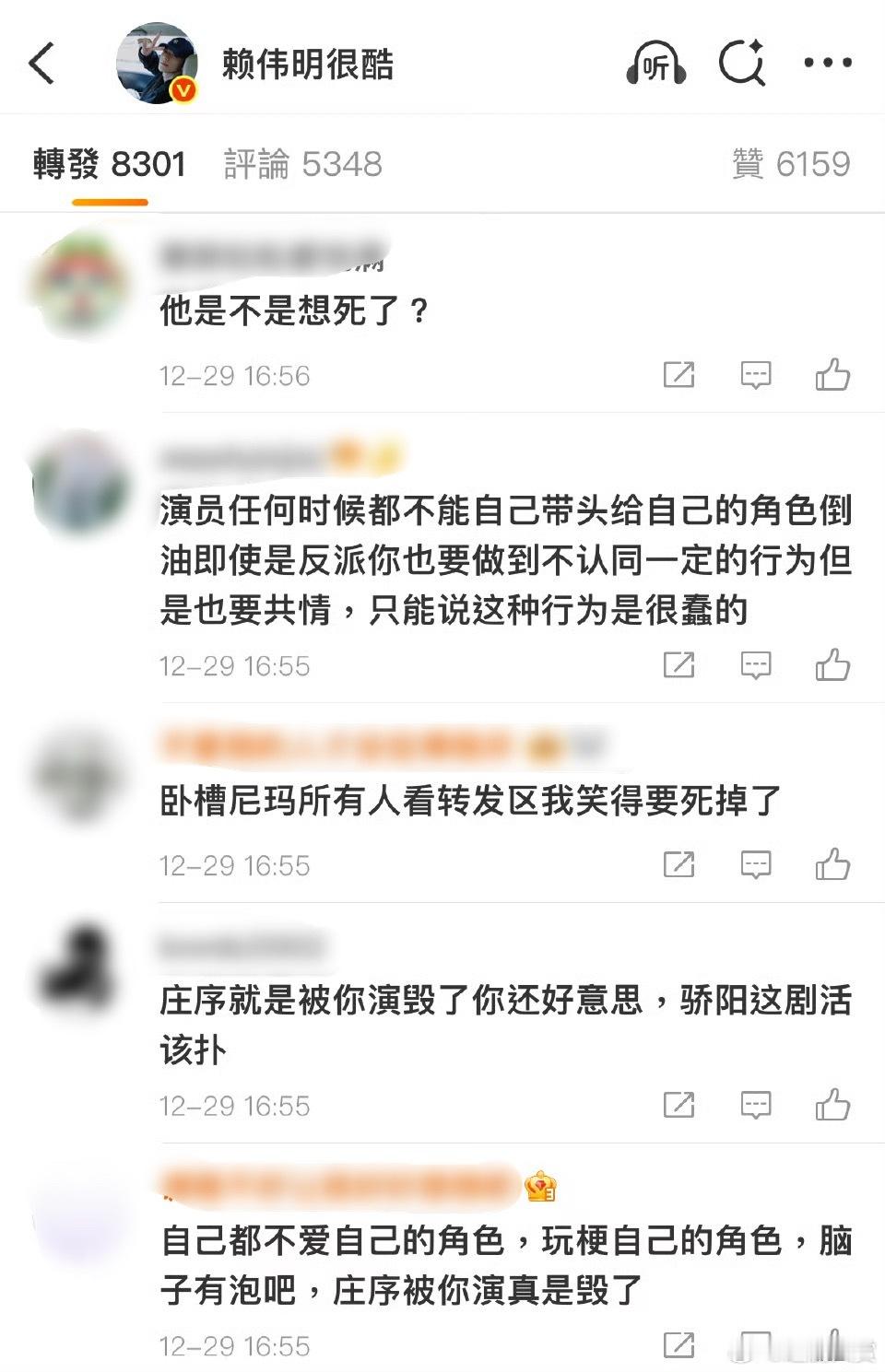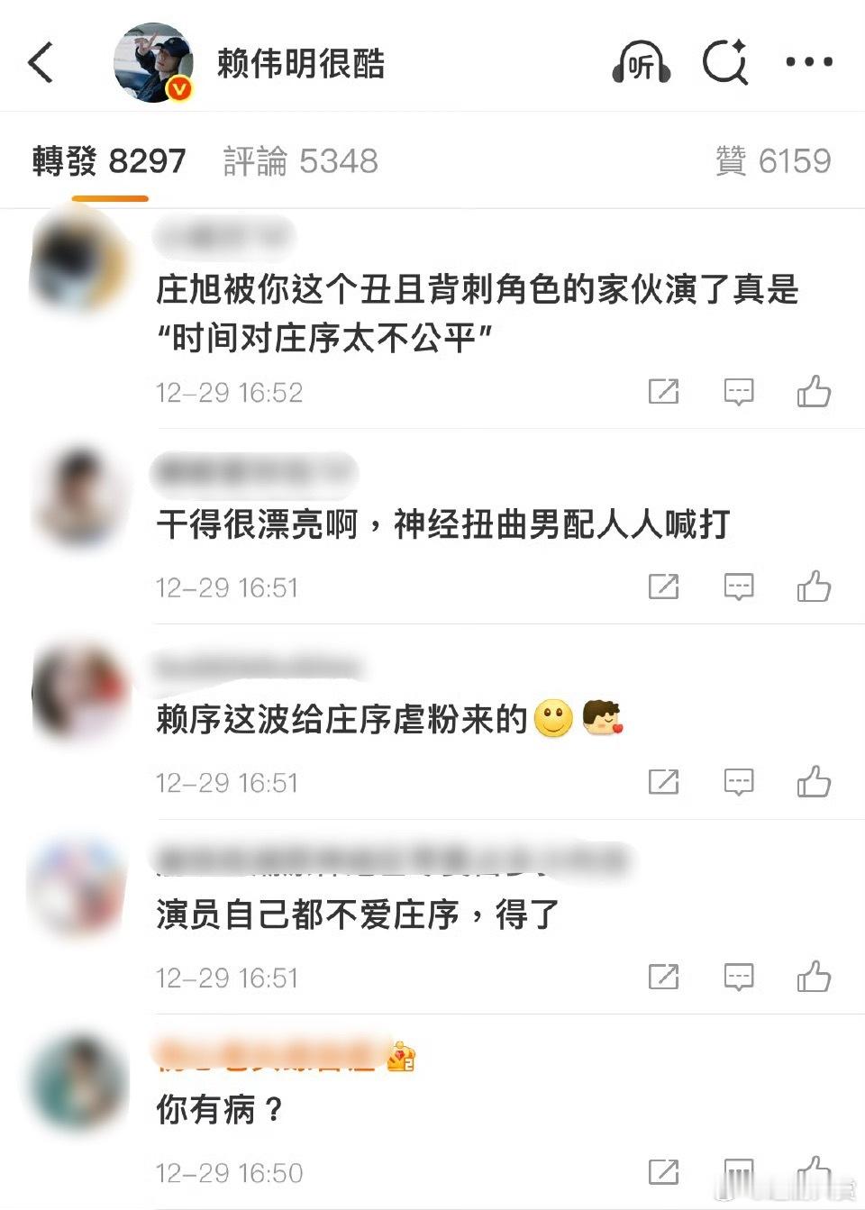 赖伟明转发区 赖伟明转发区被原著粉和庄序粉占领,称演员自己都不爱庄序、背刺角色。