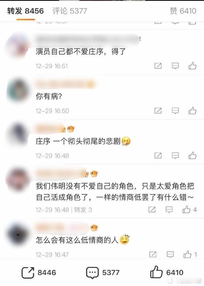赖伟明转发区 赖伟明转发区被原著粉和庄序粉占领,称演员自己都不爱庄序、背刺角色。吓得伟明删博了