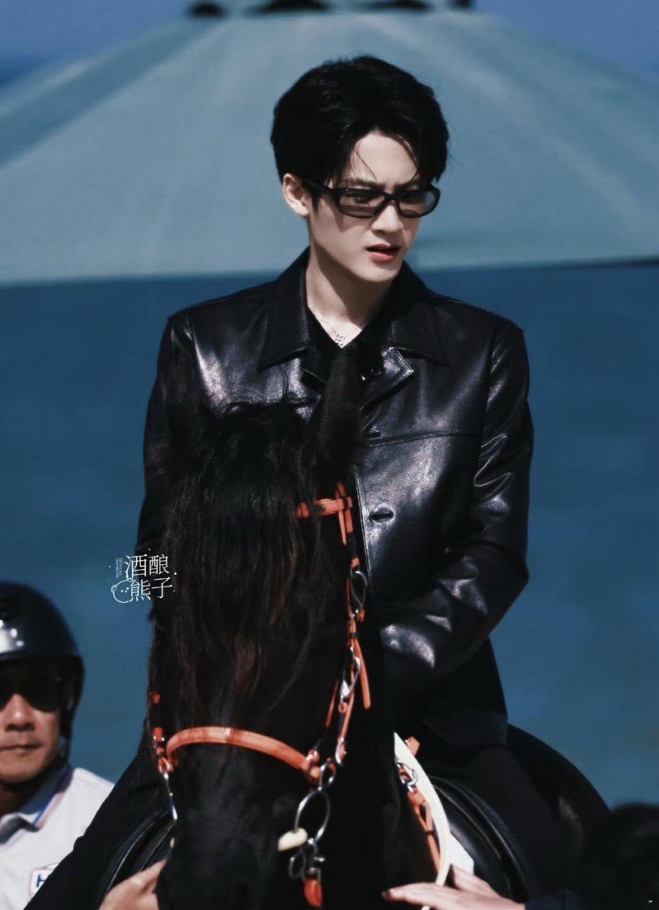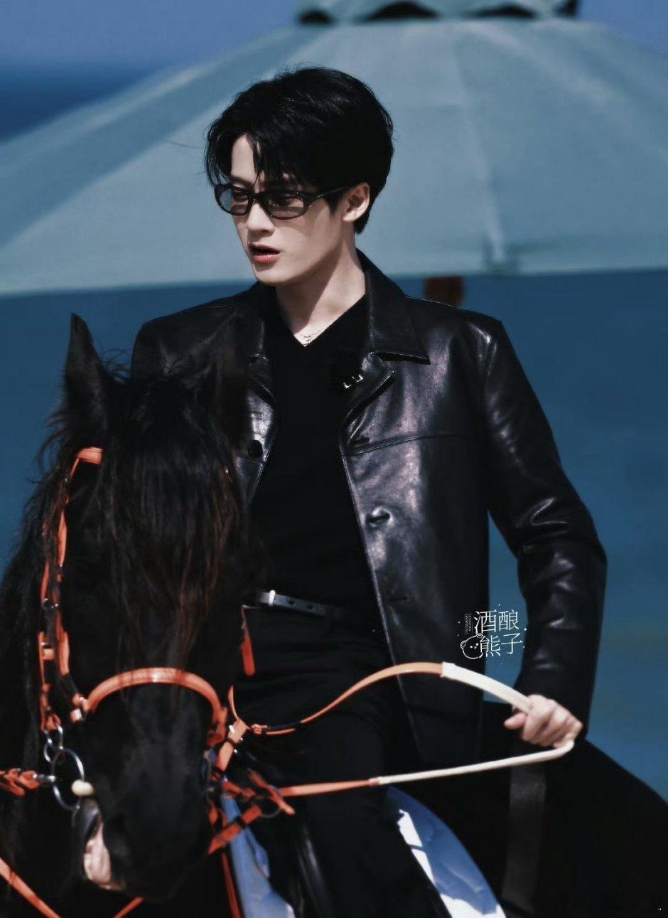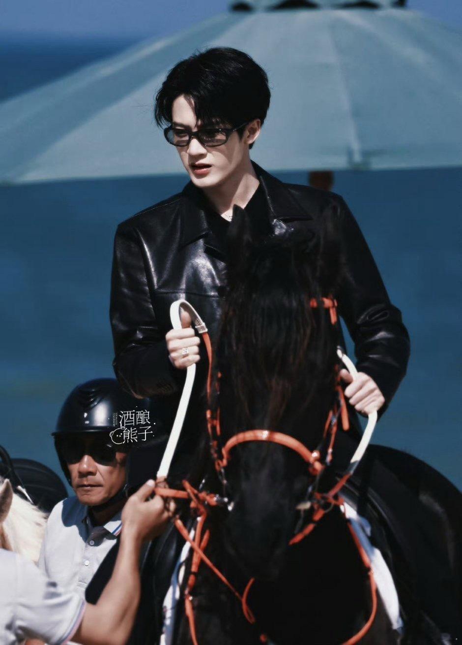 檀健次海边骑马路透🈶ALLBLACK骑马太帅啦你好星期六