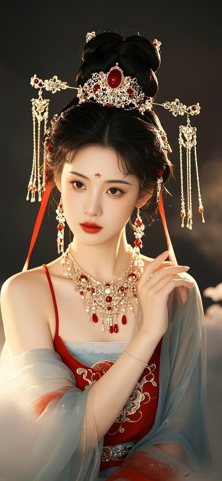 瞧那古装美女,青丝高挽步摇轻颤。眉眼盈盈如秋水,朱唇不点而赤,身姿婀娜,举手投足