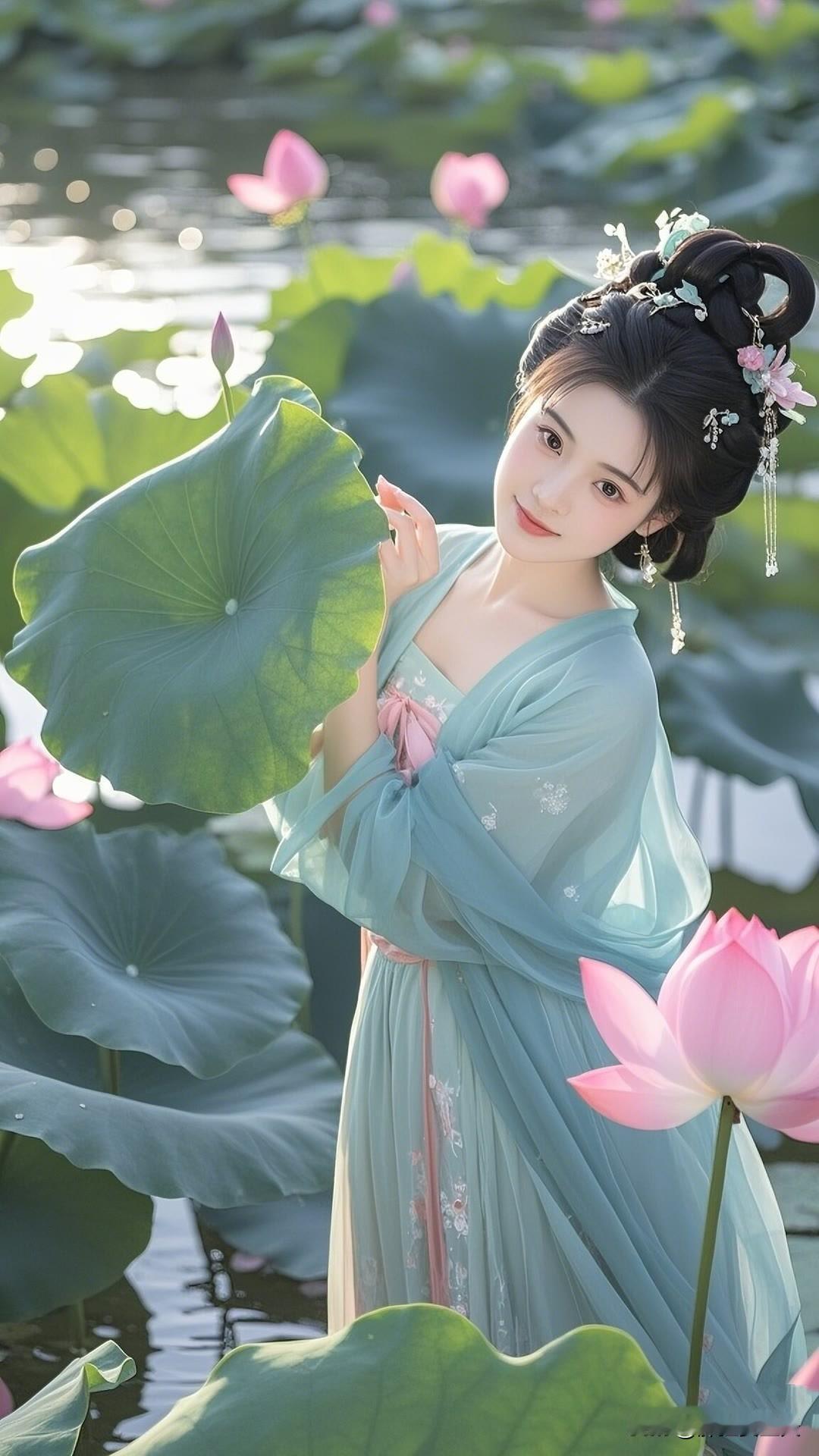 江南可采莲,莲叶何田田,鱼戏莲叶间。鱼戏莲叶东,鱼戏莲叶西,鱼戏莲叶南,鱼戏莲叶北。 古风美女
