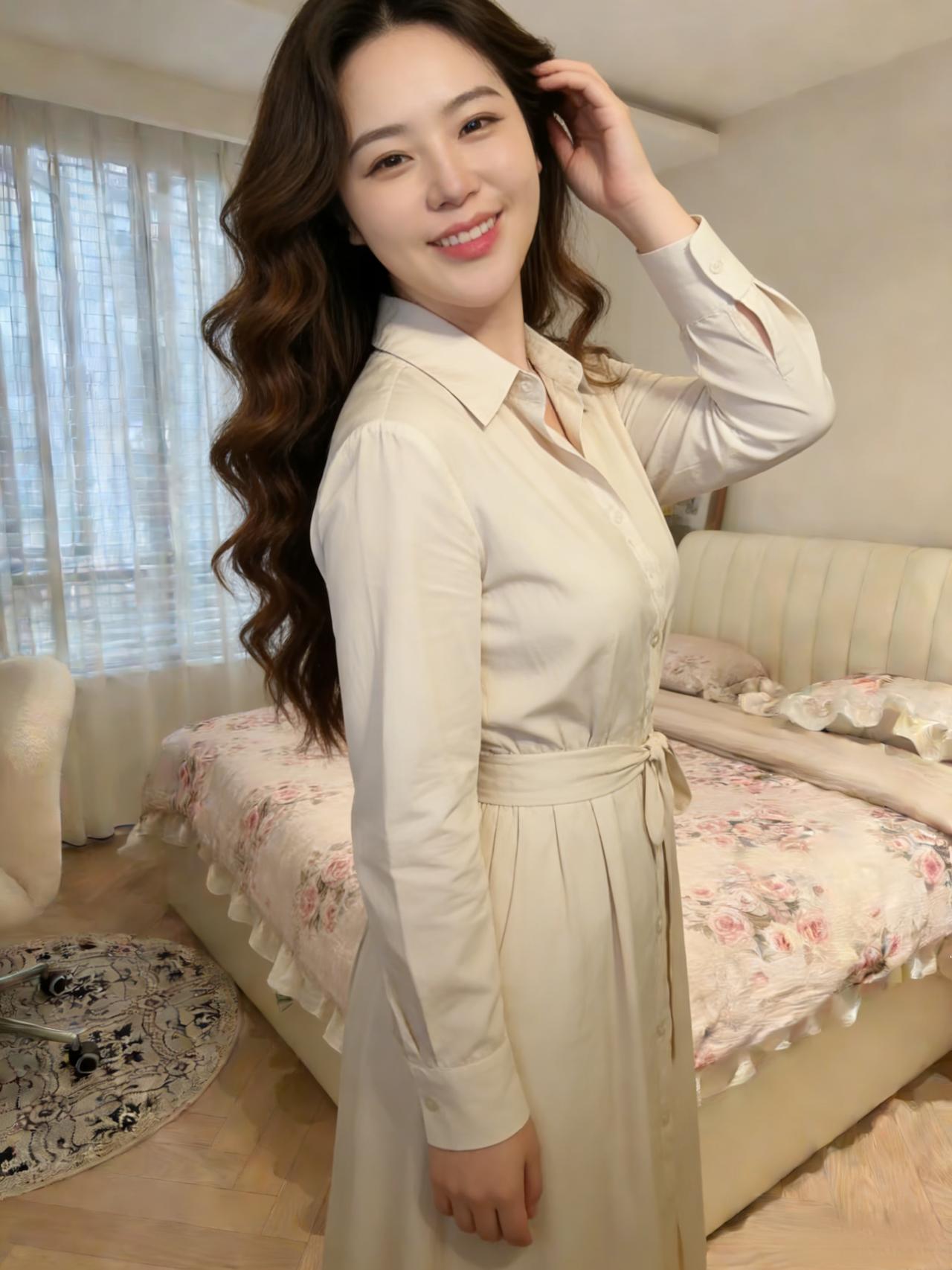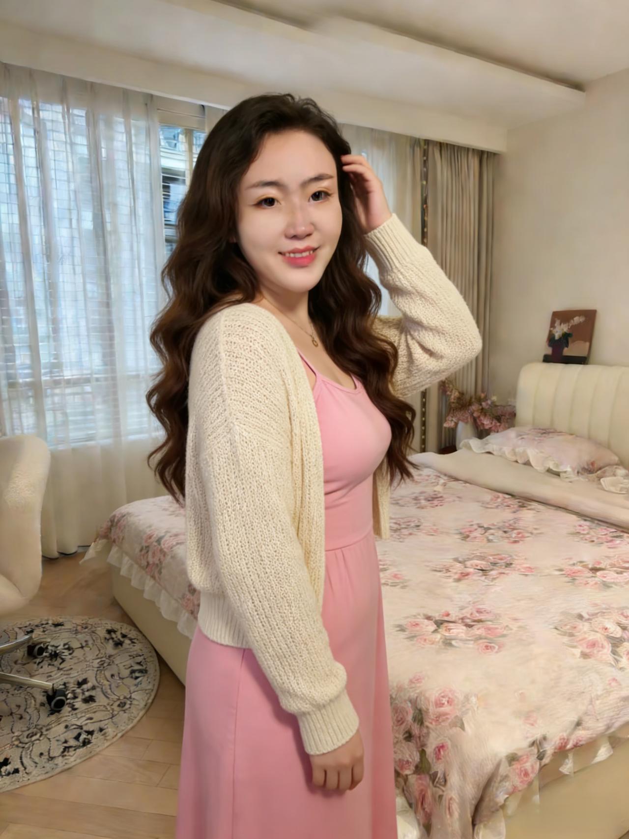 我在温馨的房间里,与自己对话 衣衫的褶皱,藏着白日的疲惫 颈间的项链,是某个人送的温柔 长发垂落,遮住半张脸,也遮住所有情绪 ~ 床的软,沙发的暖,都是熟悉的港湾 窗帘的纹路,被阳光拓印在地板 指尖划过裤缝,像划过生活的褶皱 那些未说的委屈,未实现的期待 都在这方小天地里,慢慢心安 ~ 衣衫是保护色,也是坦诚的外衣 在无人的房间,不必强撑笑意 风从窗缝钻进来,撩动发梢 像有人轻轻拍着我的肩,说“没关系” ~ 房间记着我的所有模样 狼狈的,温柔的,坚定的 而此刻的衣衫,裹着最真实的我 在时光里,静静绽放