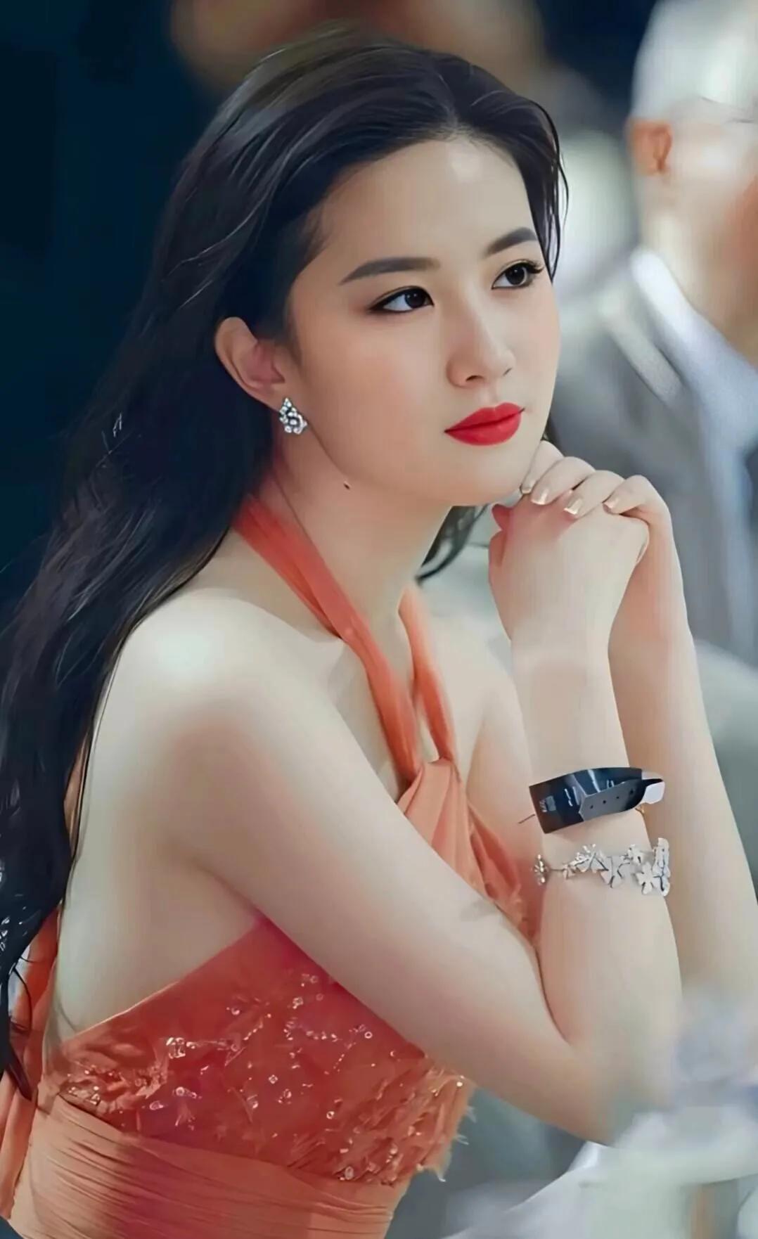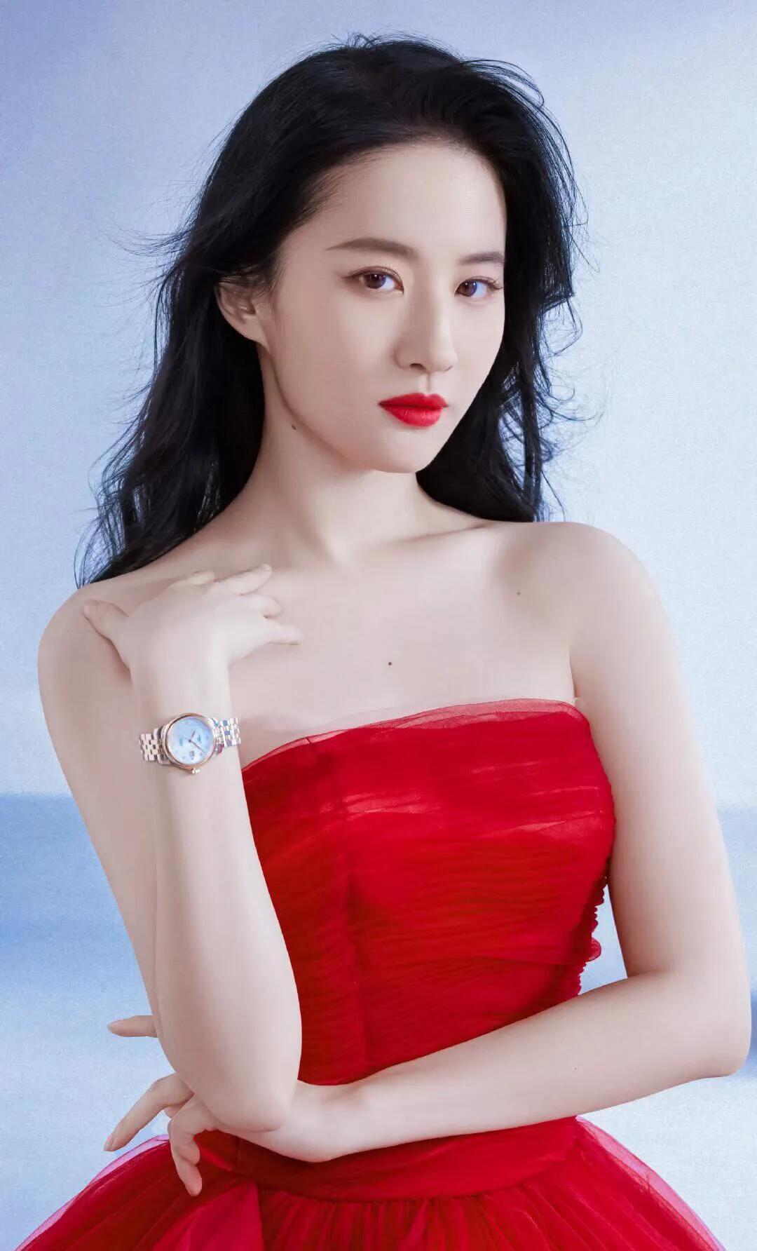 甜美笑容,黑发红唇,优雅气质,时尚穿搭
