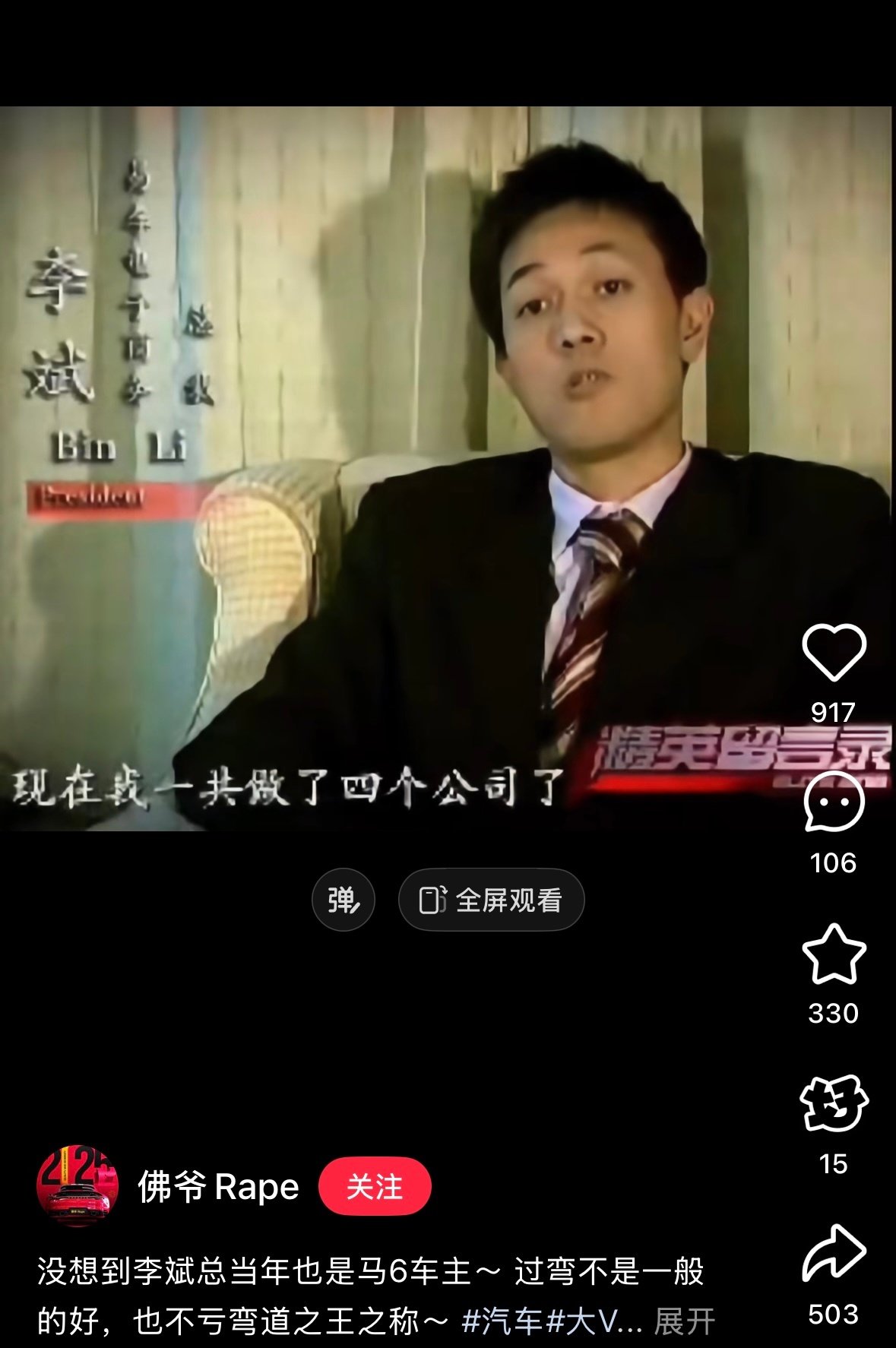易车网时期的李斌,可谓是造车界的颜值天王了。当时的李斌已经做了4家公司,乘着互联网的东风大有成就。当时李斌成了马自达6的车主(那时候大概三十多万),讲话谈吐气质非常稳重儒雅。“以前都是司机给我开车,现在我有了自己开车的欲望。”