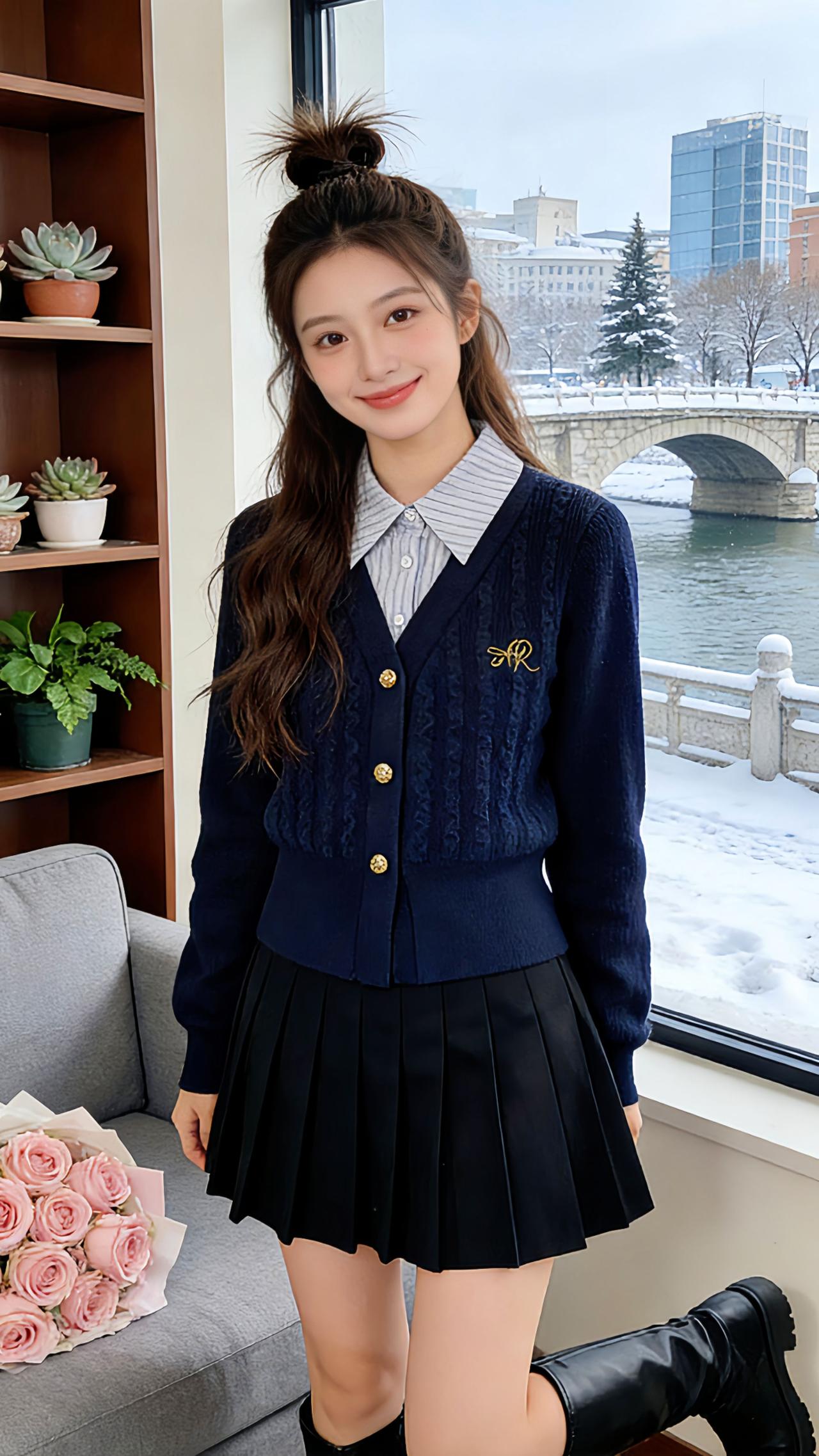 《Danny的冬日学院风宝藏针织开衫》 窗边覆雪的冬日里,Danny挖到了超爱的韩版假两件针织开衫!假两件设计省了搭配心思,藏青针织拼条纹衬衫领超有学院感,配百褶裙和长靴,珍珠耳环点缀更显精致,少女感直接拉满~ 软糯的针织面料亲肤又显瘦,半扎丸子头搭这套,在摆着鲜花绿植的房间里拍照巨出片,覆雪城市景当背景,韩系冬日氛围感直接拉满,这款开衫真的值得入手~ 韩系穿搭 针织开衫 内搭外穿都好看 面料柔软舒适