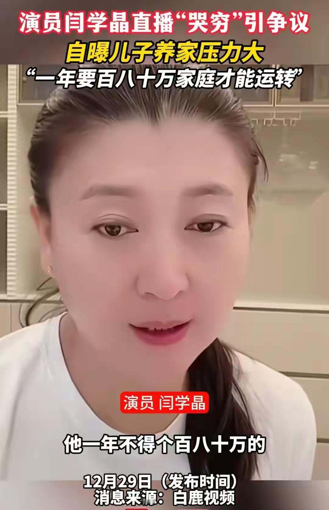 闫学晶不该被批评。 看了闫学晶这个事儿,更加懂得余华的一篇文章:我们生活在巨大的差异中。 当年余华出版了一本散文集,题目大概就是《我们生活在巨大的差异中》。 他在那篇文章当中举了一个例子,同样是六岁孩子想要的生日礼物,一个山村的孩子想要一双运动鞋,而一个北京的孩子想要一架真的飞机。 所以当时的余华就很感慨,我们这个社会是撕裂的状态,虽然生活在同一个世界,同一片蓝天下,但是每个人之间的差异真的很大。 闫学晶说他的儿子每年仅仅收入几十万,他觉得这已经很少了,孩子也感觉生活的压力很大 但是在这几十万放在普通家庭当中,那是非常值得庆祝的一件事儿了。 大多数家庭几十万是很难拿出来的,尤其是每年收入几十万。 其实从古到今都是如此,我们都生活在一个充满巨大差异的社会当中。 闫学晶没有必要被挨骂,至少她说的没有错,那是她从她那个阶层发出的真实的感悟,我们没必要对她过于苛责。