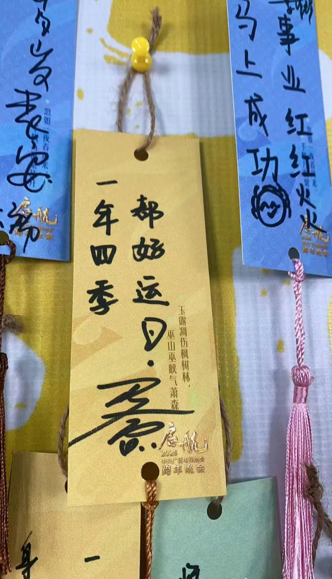 从央视跨年晚会心愿墙上看哥四个的字体比较。 陈楚生、王铮亮、苏醒和王栎鑫一起在央视跨年。 在晚会心愿墙上都留下了笔迹墨宝,王铮亮写的是“冬有安康”,很认真的字体,看似一笔一画,就如他做音乐的态度。 陈楚生留的是“春花秋月,岁岁长安”,有一些连笔,线条很柔和,是个内心柔软的人。 苏醒的是“未来如序,一切可期”,下笔带着硬气,给人很大气的印象。 王栎鑫提笔则是“一年四季都好运”,字体圆润、结构紧凑,是哥四个里字写的最好的,看来也是追求完美的一个人。