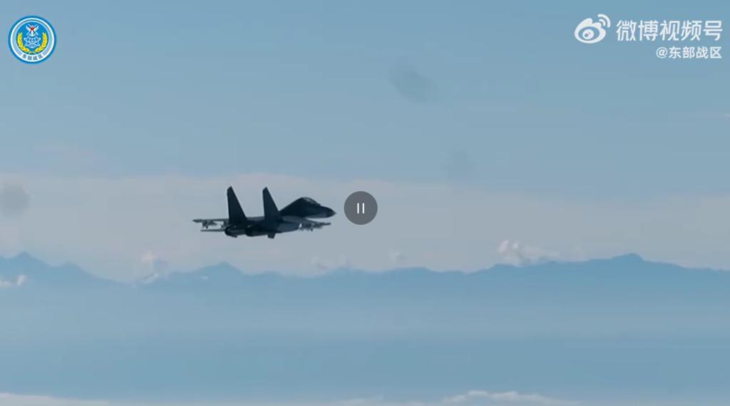 《中国军号》微博今天晚间上传「这么近那么美,随时到台北」短片,当中出现解放军歼-
