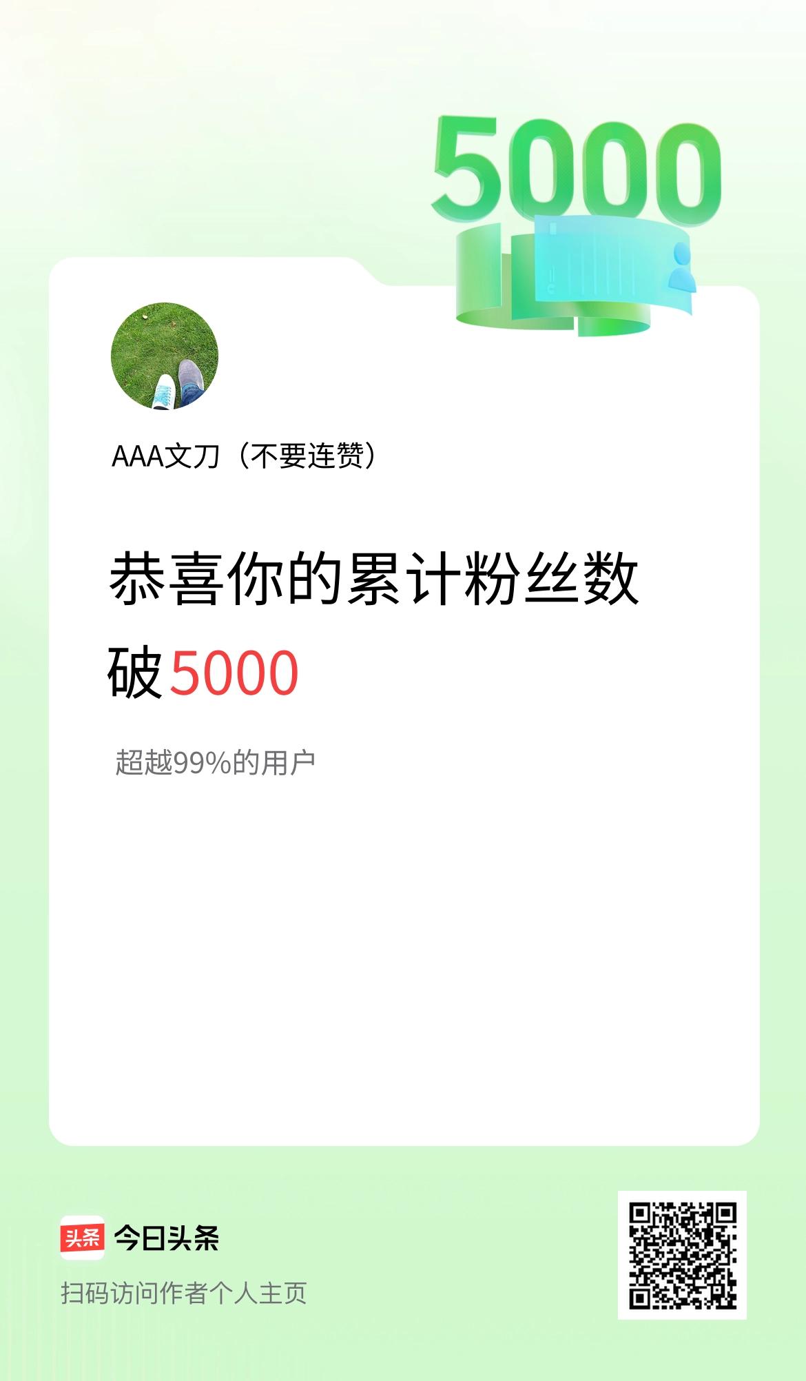 我在头条累计粉丝数破5000啦!