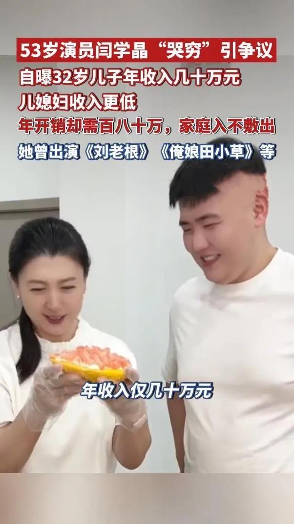 闫学晶自曝儿子年收入仅几十万! 演员闫学晶在直播中一句“儿子年收入仅几十万,家庭年开支需百八十万才能运转”,因“仅”字刺痛公众神经,全网争议的核心在于明星阶层对“穷”的认知与普通人存在难以弥合的鸿沟。其子林傲霏(32岁,演员)年收入约20-30万元,儿媳(音乐剧演员)年收入不足10万,两人年总收入不到40万元,称儿子家庭在北京的年开销需80-100万元才能“维持运转”,包括房贷、育儿、教育等高额支出,并建议儿子“去横店发展”。闫学晶自曝儿子年收入仅几十万 你对人生有哪些感悟 闫学晶演唱会 闫学晶唱评剧