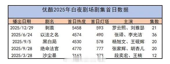 罗云熙剥茧2025年优酷白夜剧场首日热度第1️⃣
