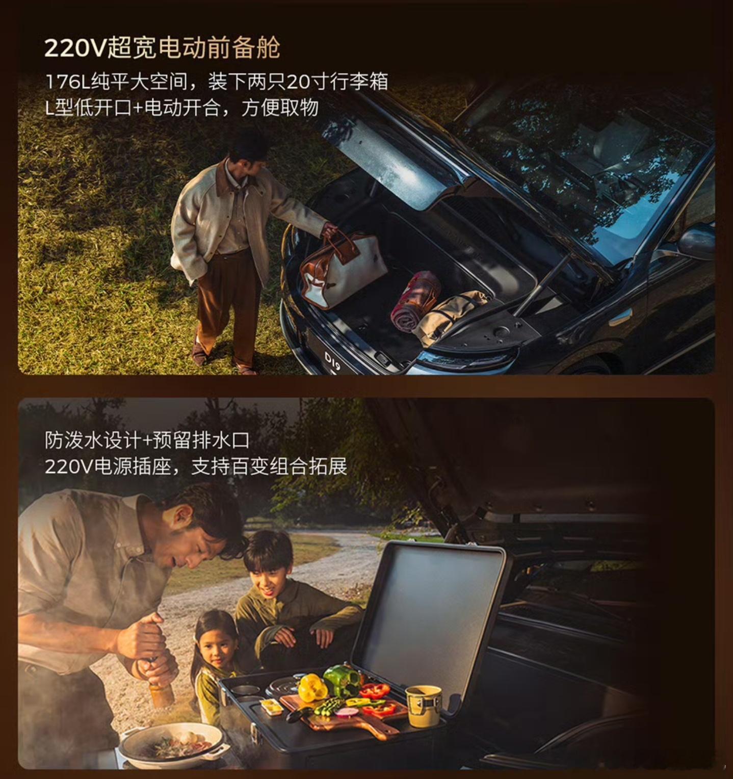 只会「拿来主义」,算啥本事?正确的做法是:先拿来,然后再进行针对性的创新和再优化,融汇贯通,有机整合,变成自己的东西,那就叫真 nb!就例如,零跑 D19 上的这个前备箱,论容积,确实不如基于 NT3.0 打造的乐道 L90 和蔚来 ES8(也由此可见,蔚来在整车集成度这块,确实很强),但是在场景开拓和用户体验上,零跑其实多想了一层,很简单,有了 220V 接口之后,就能把日常的外出露营的电器全部搬到前舱了,想象空间大多了,也不用再绕到后尾箱的 220V 或者通过充电口实现外放电了,易用性上明显更占优。PS:你们觉得明年的前备箱,还能整出什么新玩法?大v聊车零跑10周年发布会