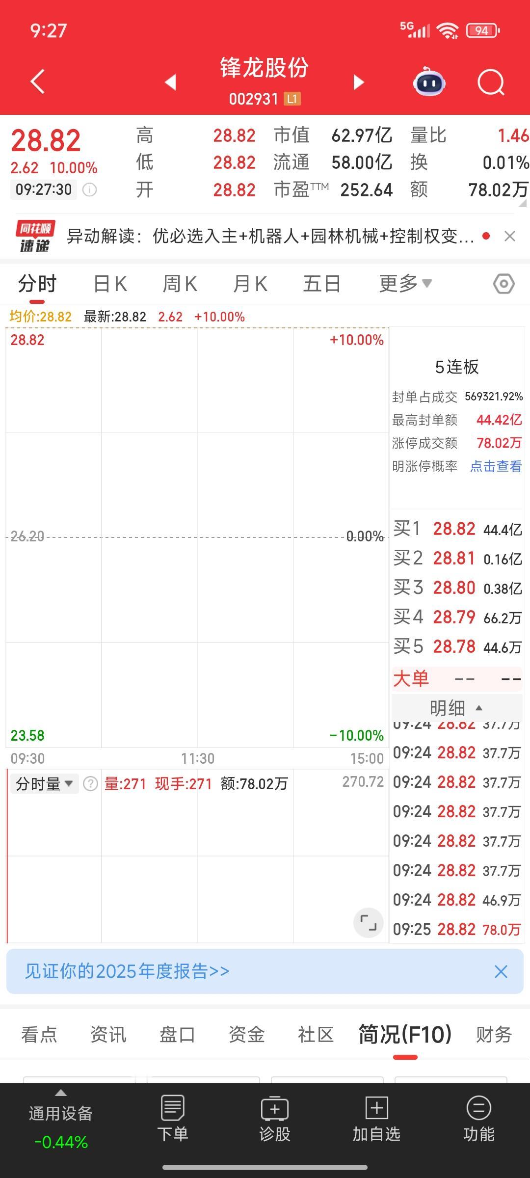 A股今天人气最高的票诞生了 一项数据碾压所有强势股 涨停封单金额排在第一位 足足有44.4亿封板资金 这是什么概念呢 如果每人交易一万元的话 就有44.4万散户参与 里面的人攥紧筹码不卖 外面的人抢着买也买不到 目前四个吃独食一字板 只能等开板以后才有机会参与 有必要提醒一下,机会和风险并存 一定要充分了解风险,谨慎再谨慎