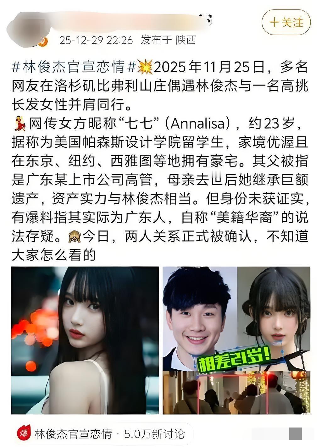 老牛吃嫩草?林俊杰官宣恋情,女友疑似小近二十岁! 林俊杰官宣恋情了!29号他晒出陪妈妈庆生的合照,身边年轻女生就是女友,俩人同框的年龄差一眼就能看出来。 有网友扒出女方疑似是95后,看着才二十出头,比林俊杰小了近二十岁(信息未证实)。评论区直接炸锅,有人直言“妥妥的老牛吃嫩草”,也有人吐槽“小这么多,真的合适吗?”,还有粉丝替他开心:“老林终于脱单,不用再当钢琴单身汉了”。 林俊杰都四十多了,找年轻女友本无可厚非,可这快二十岁的年龄差也太扎眼了。你们觉得这年龄差是真爱,还是网友说的“老牛吃嫩草”? 林俊杰