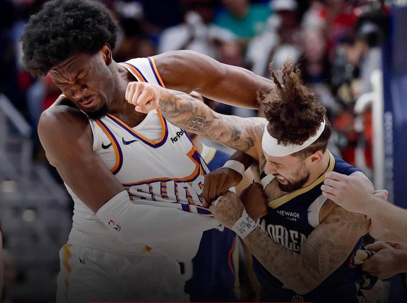 NBA对于昨天的挥拳冲突开出重磅罚单:鹈鹕后卫阿尔瓦拉多禁赛2场,太阳内线威廉姆斯禁赛1场