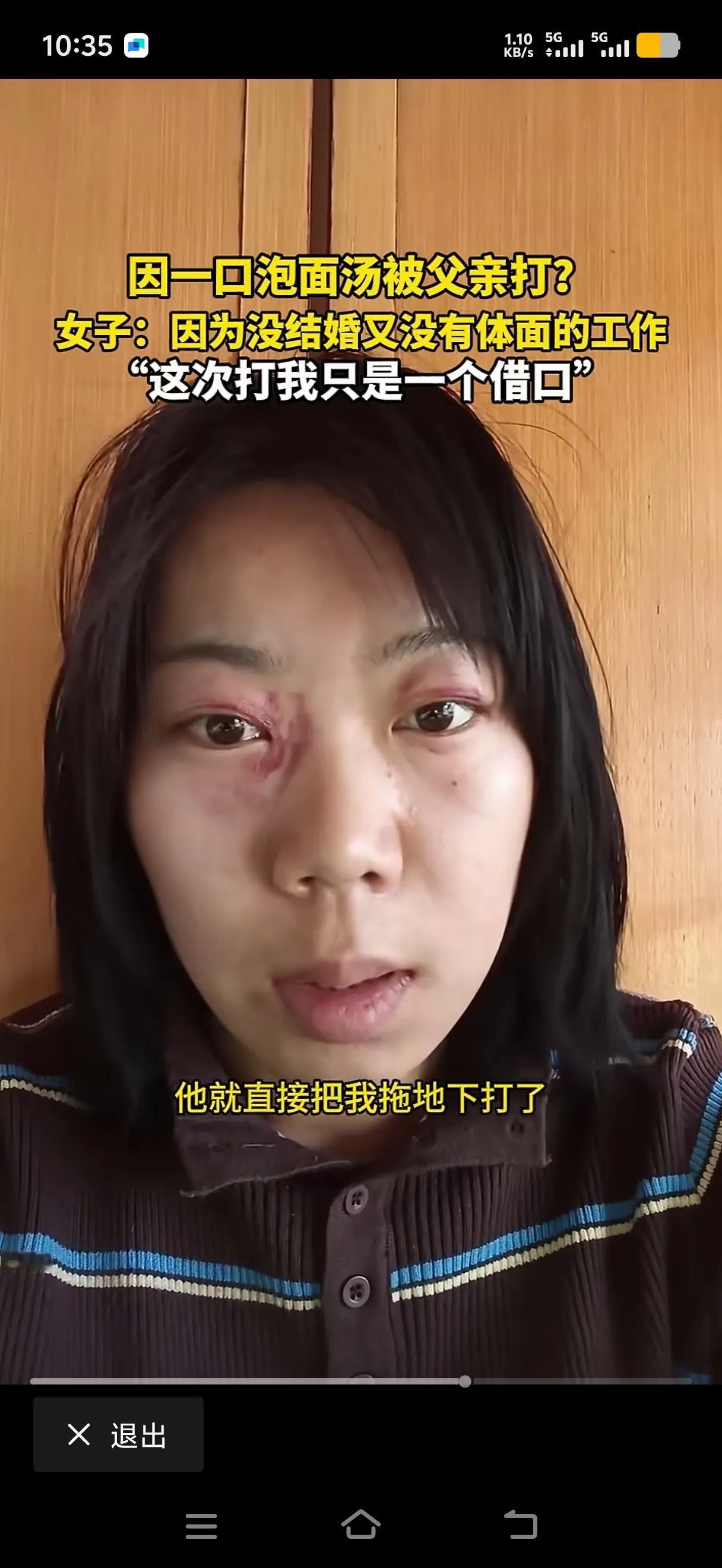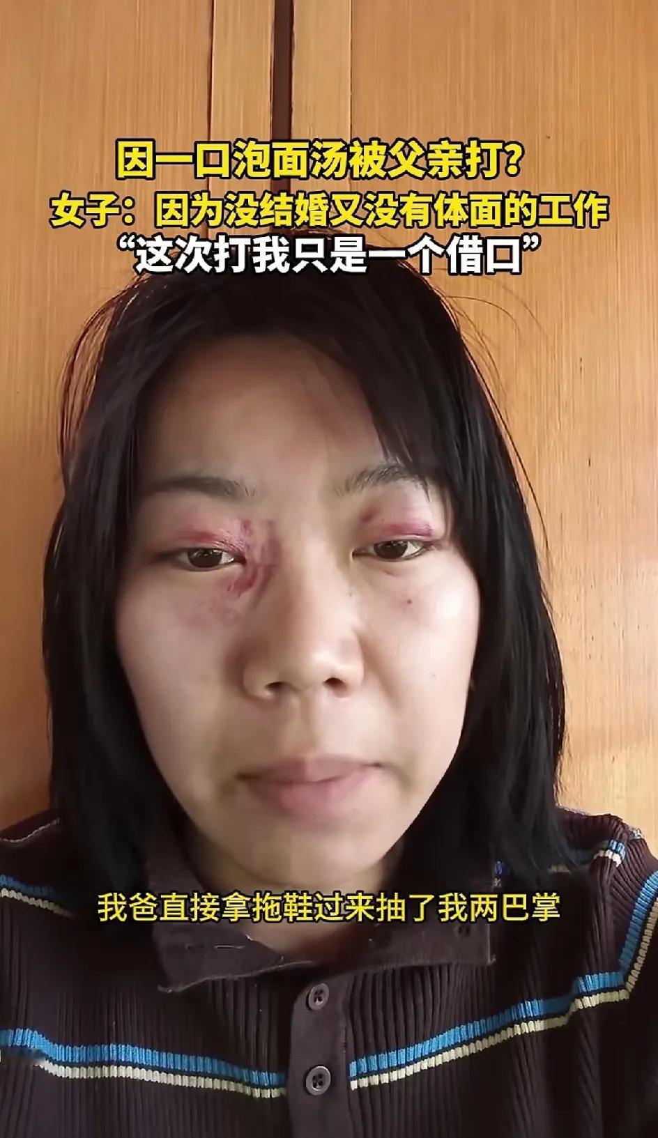 女孩因为一口泡面汤被父亲打?没有体面的工作,怎么了?能养活自己就行了。不婚主义怎么了?非要结婚吗?哪条法律规定非要结婚? 女孩说当时她弟弟在吃泡面,她让弟弟留一口泡面汤给她,弟弟答应了,可是父亲不同意。无缘无故的拿着拖鞋抽了她两巴掌。女孩也太老实了,父亲抽了她之后,她无动于衷,只是瞪着看着父亲。父亲反而更生气了,把她按在地上一顿打,满脸打的青紫。 评论区里面全是一边倒,针对女孩的,说不结婚,又没有体面的工作,谁看了都生气。估计评论的都是做父母的角色。 你自己生的孩子,你就必须要求她有体面的工作,必须要求她结婚吗?父母又为她做了什么?把她养活大,然后再去要求她必须做什么吗? 其实最好的建议,女孩搬走远离这个家。该尽孝的时候尽孝,每个月给父母转点钱。工作不体面又怎么样?只要是凭自己的双手踏踏实实就行了。不结婚也没关系,不结婚又不代表人品不好,结了婚的人就很光荣吗?