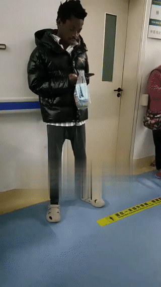 网友在医院里拍到一名来这里看病做检查的小黑哥? 也不知道他究竟是得了什么病? 看他手上提着的塑料袋里有化验单、检查单,和医生给他开的药品,应该不是什么大病吧!老外黑哥