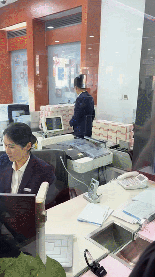 网友在银行里偶遇押运员向银行运送现金。 这么多的现金钞票恐怕有不少人都没见过吧!银行取大额现金