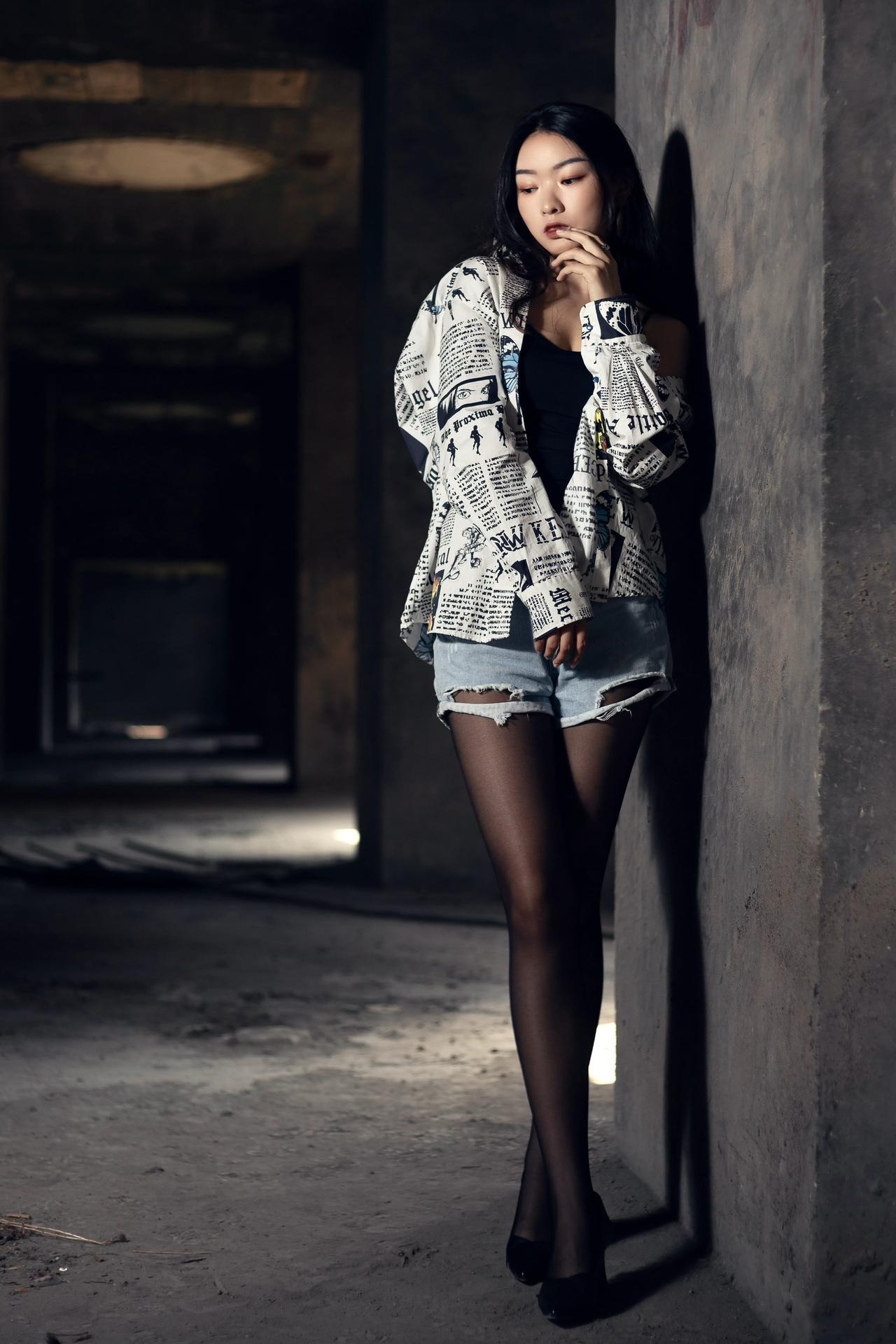 把画面压暗真的很重要,人物亮背景暗,对比感一下子就出来了。人物贴着墙站,不放在正