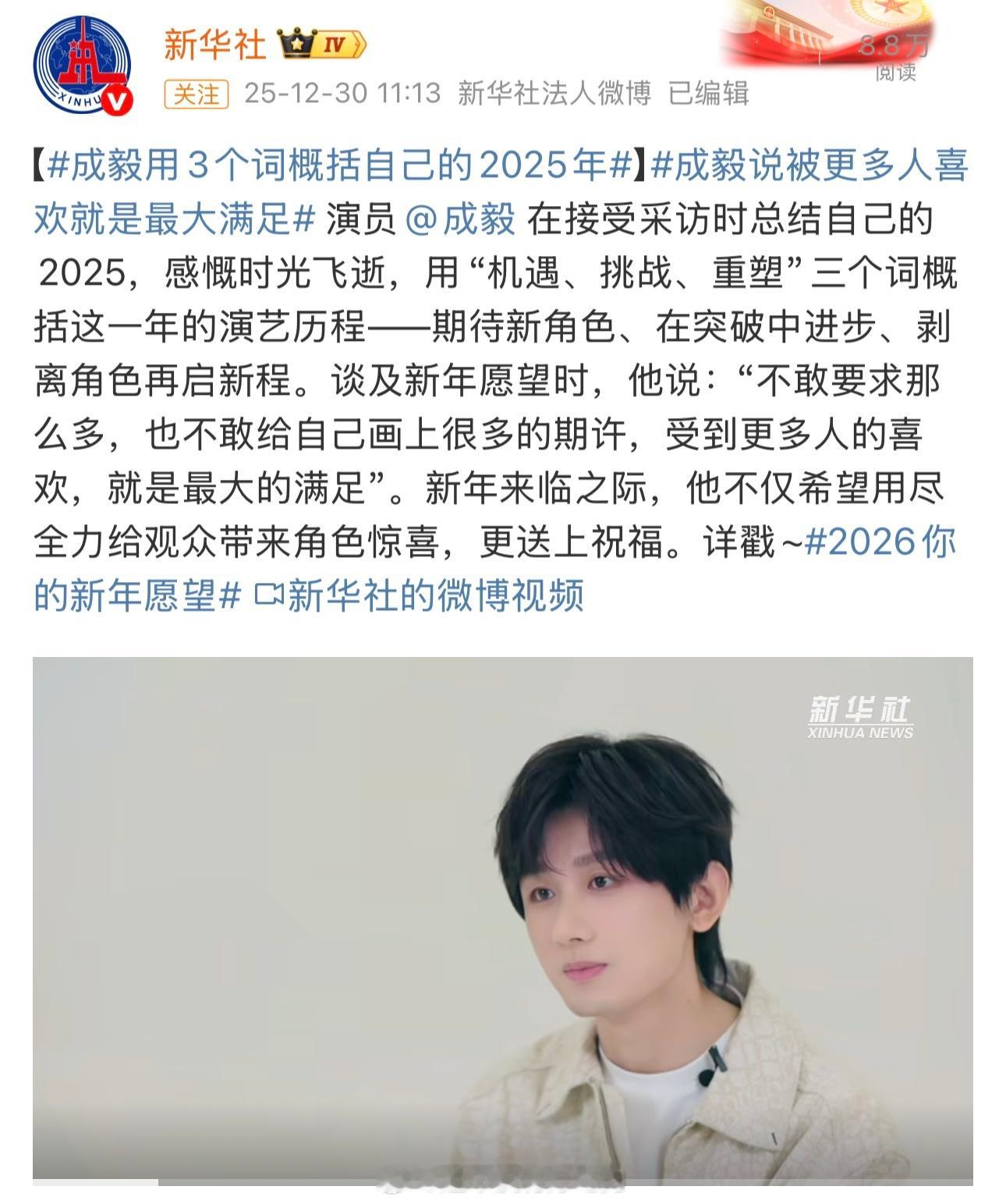 新华社专访成毅成毅概括自己2025三个词“机遇、挑战、重塑”