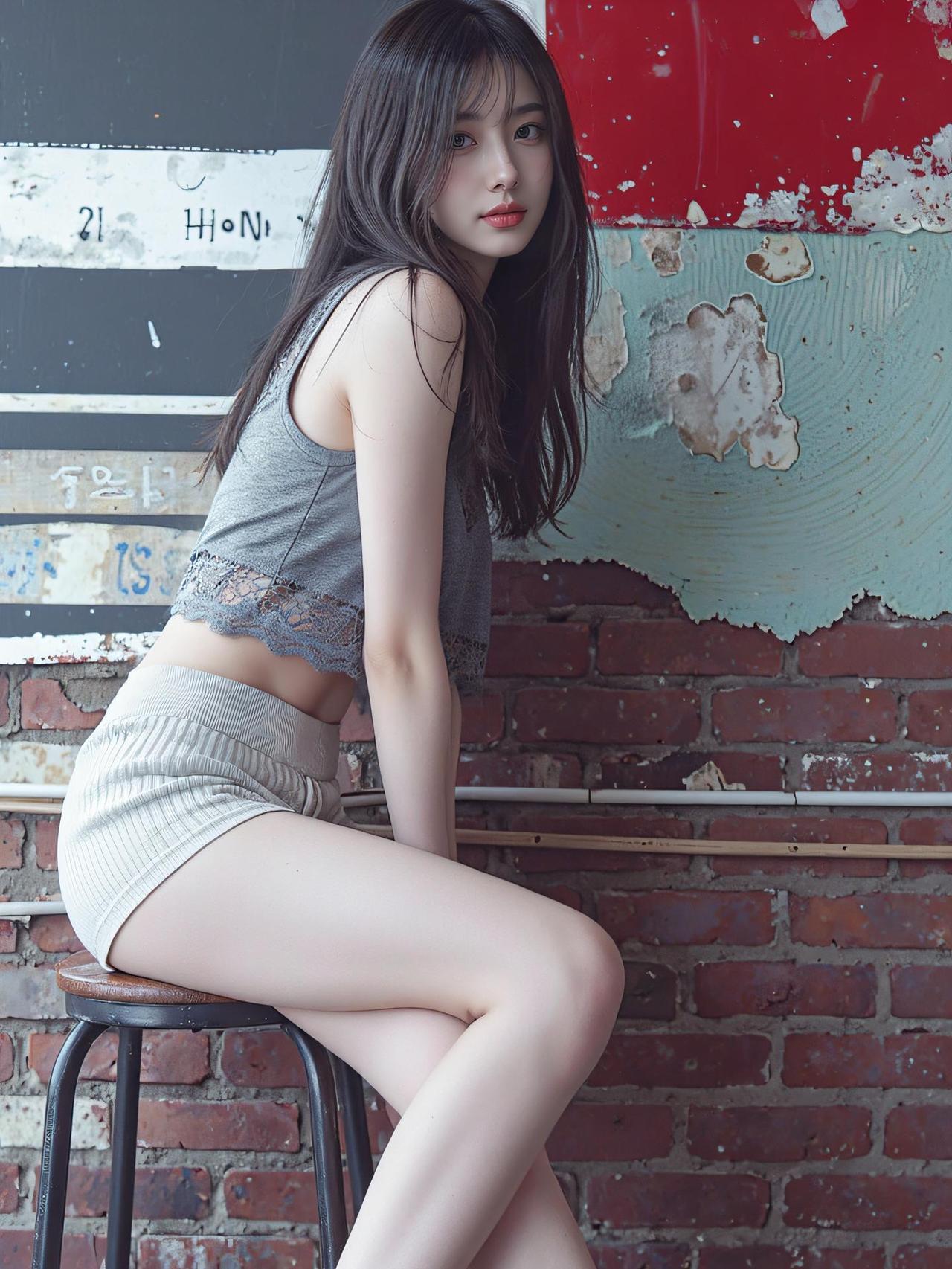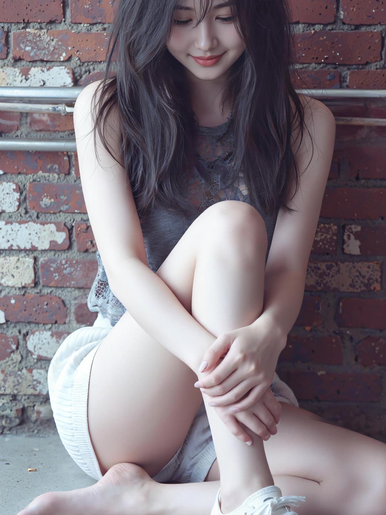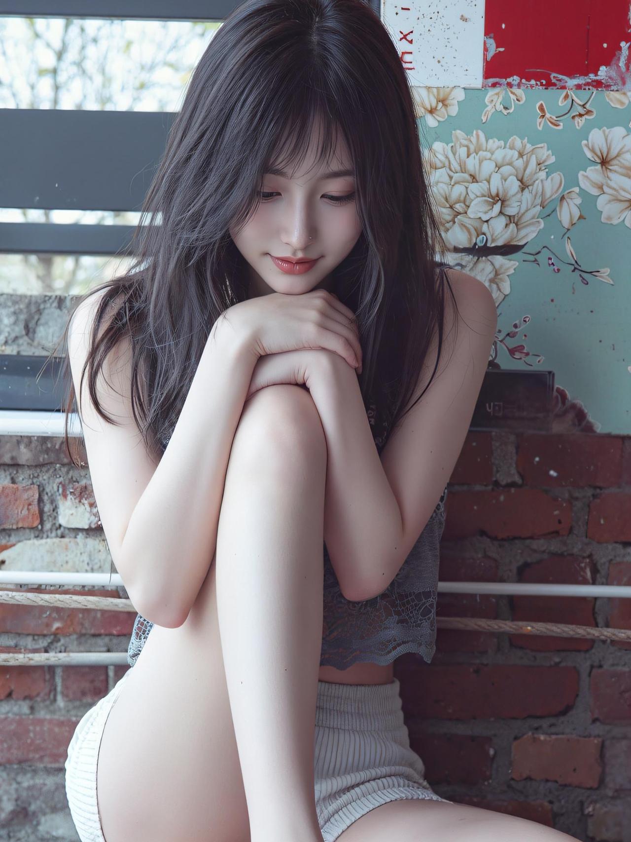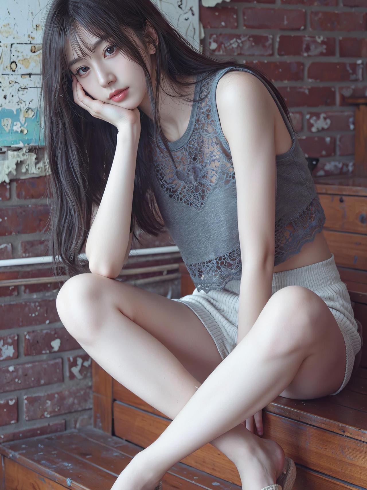 温柔少女风,复古红墙背景,清新自然妆容,时尚蕾丝吊带衫,甜美迷人。女生怎么穿紧身裤才好看 什么搭配显气质