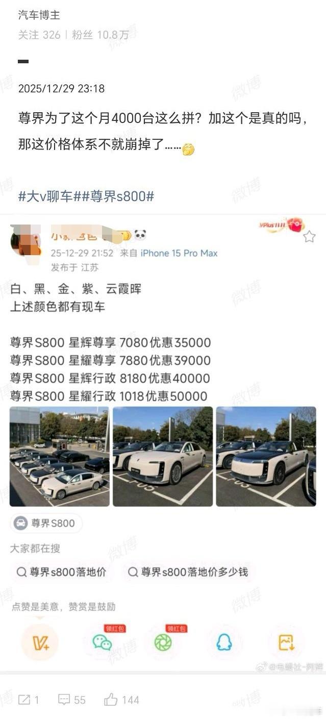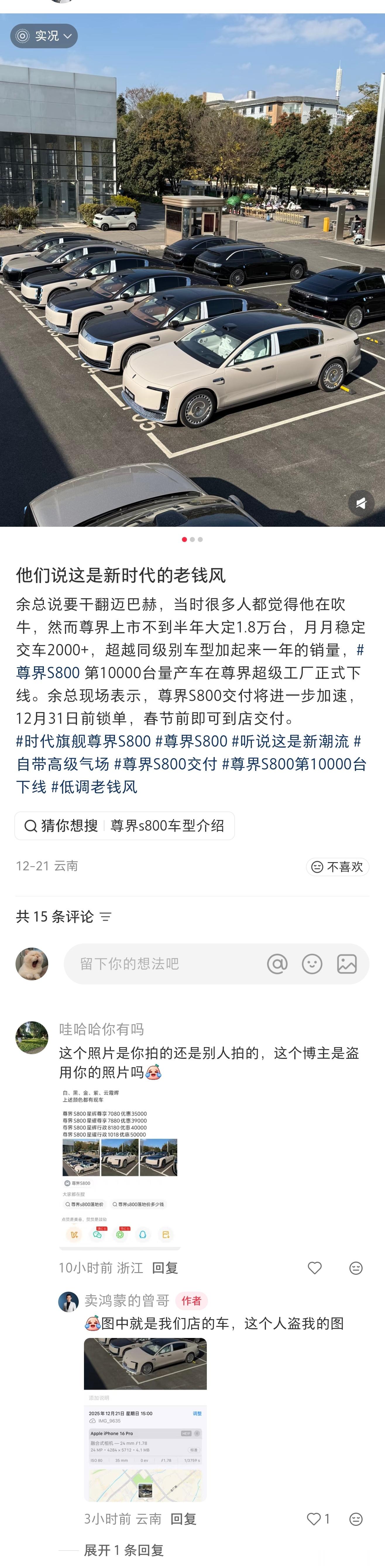 尊界销量高歌猛进,最近想搞事的又多起来了盗别人图声称自己有车有折扣,还有跟着带节奏的,这些不是想骗人就是别有用心。。。